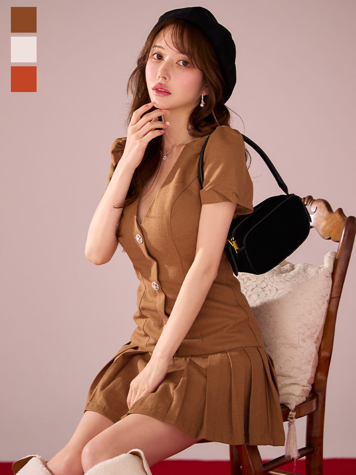 ショートスリーブロープリーツミニドレス/キャバドレス【XS-Lサイズ/3カラー】[OF01A] 【SB】dzwAG [3291SBdzwAG-251015-1]