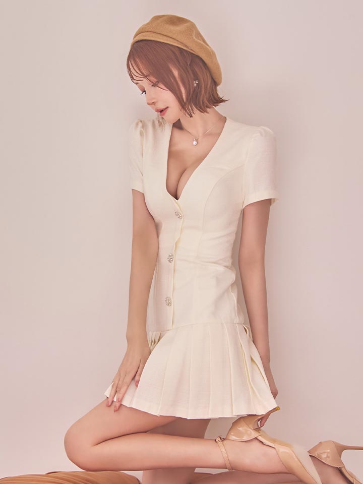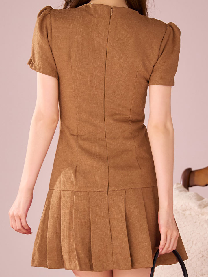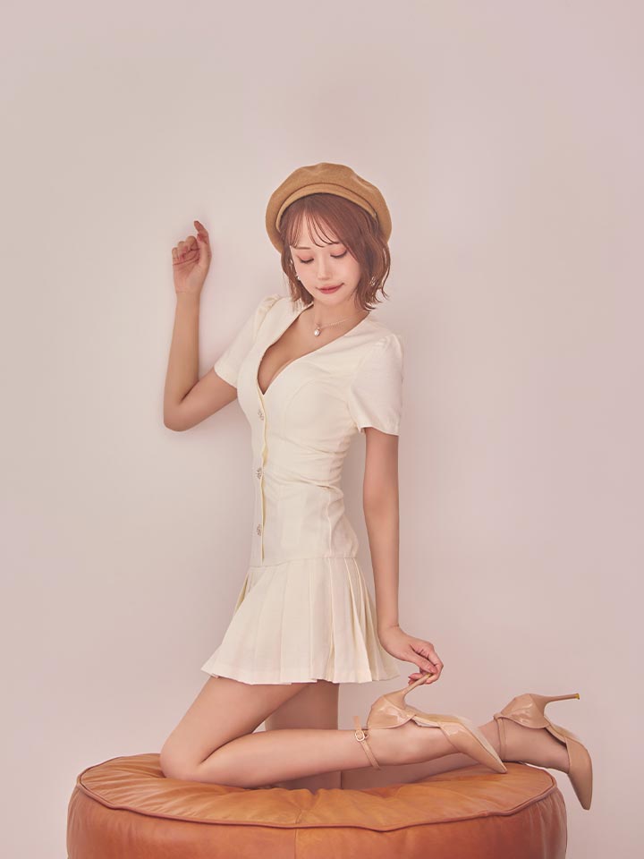 プリーツスカートが軽やかに揺れるミニドレス。