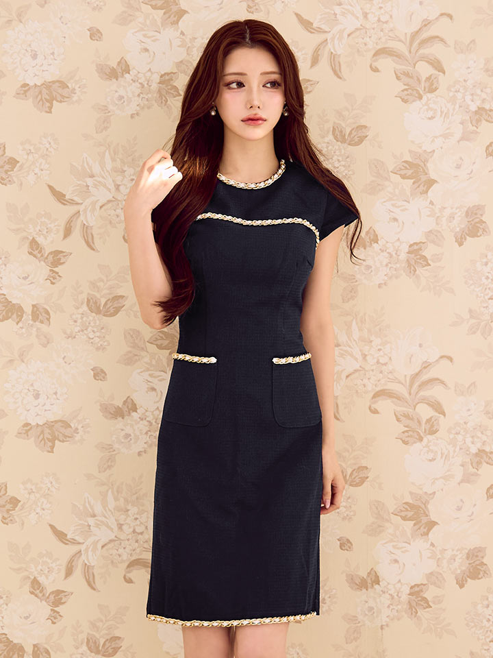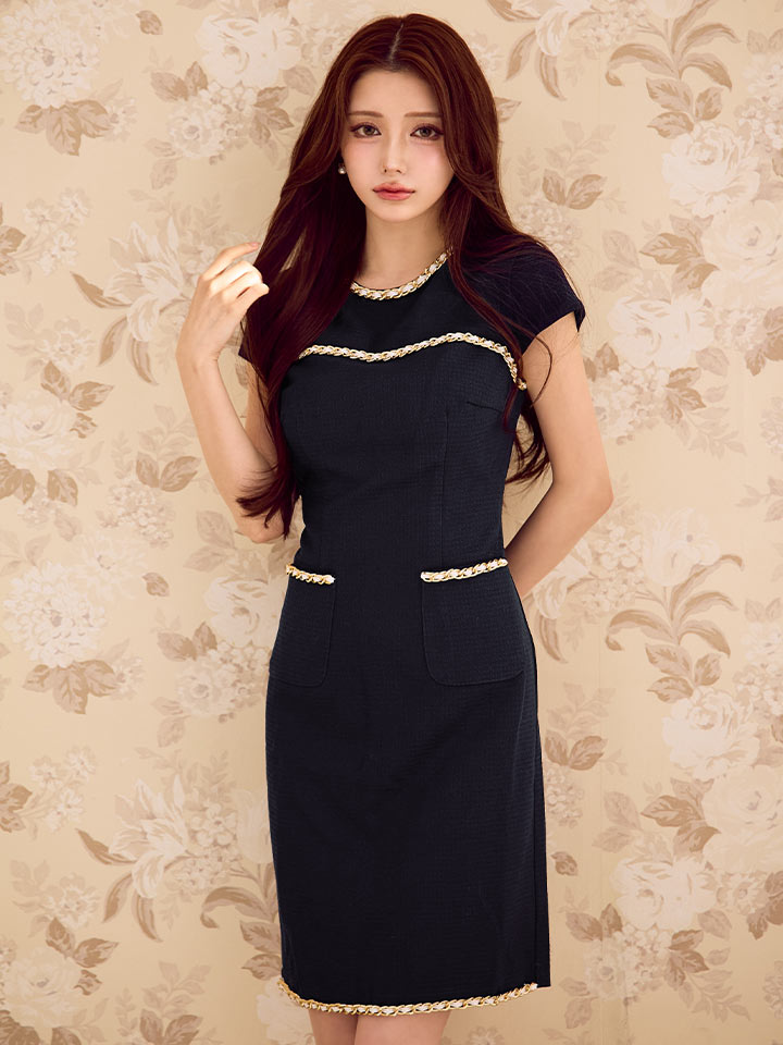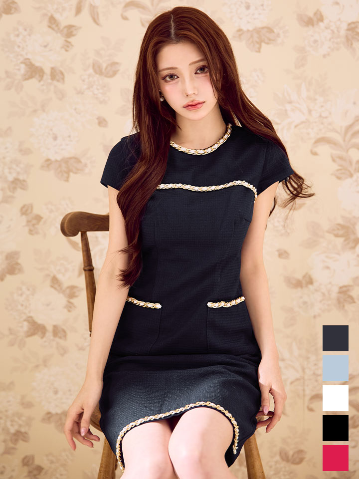 チェーンチェックツイードワンピースドレス/キャバドレス【XS-XLサイズ/5カラー】[HC02-X] 【YN】dzw [4882YNdzw-251016-1]