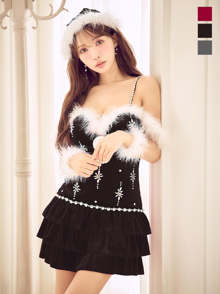 【即日発送】【送料無料!】【サンタ】 スノーフレークビジューフレアサンタコスプレ【コスプレ4点セット】【XS-Lサイズ/3カラー】[OF01] [SS-195-SB-dzw-WR-25MY]