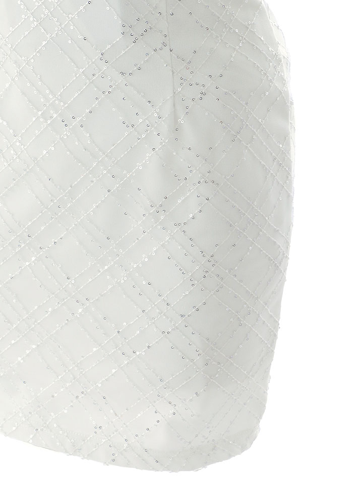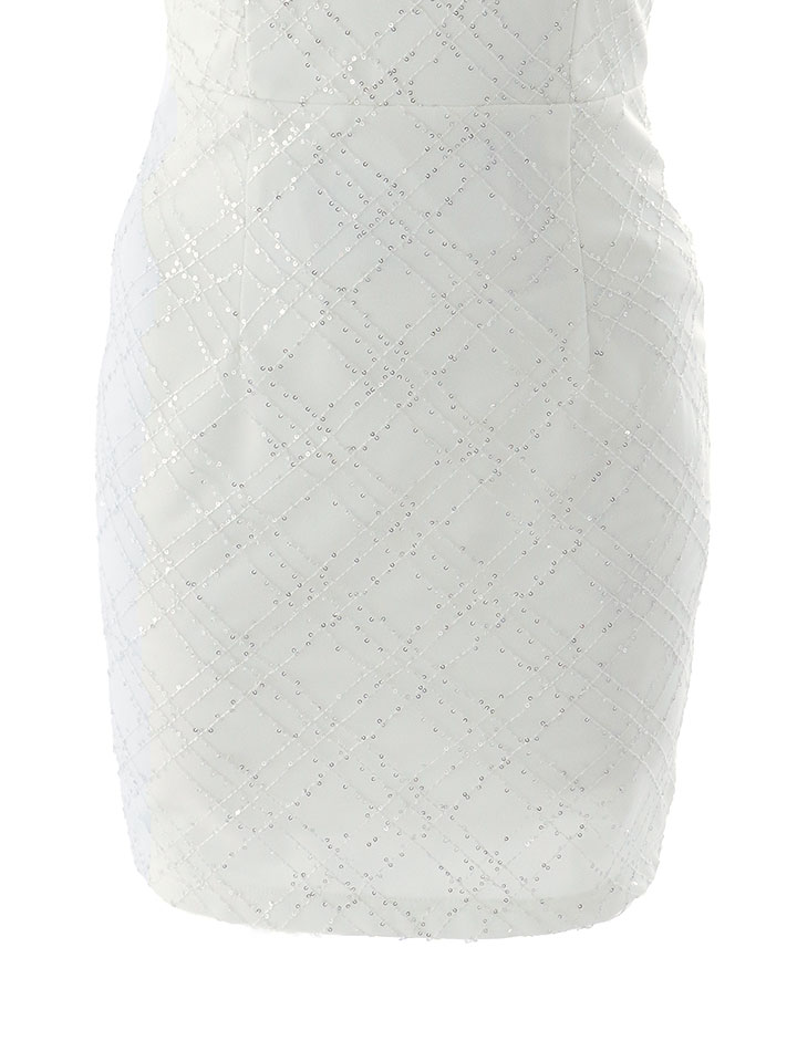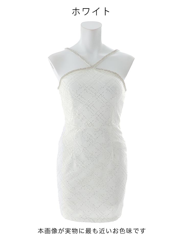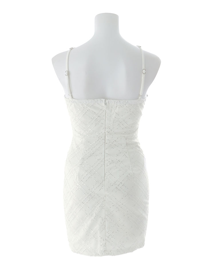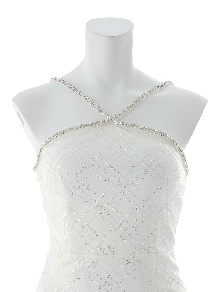 V字にあしらわれたビジューが輝きを放つ、上品でゴージャスなミニドレス。