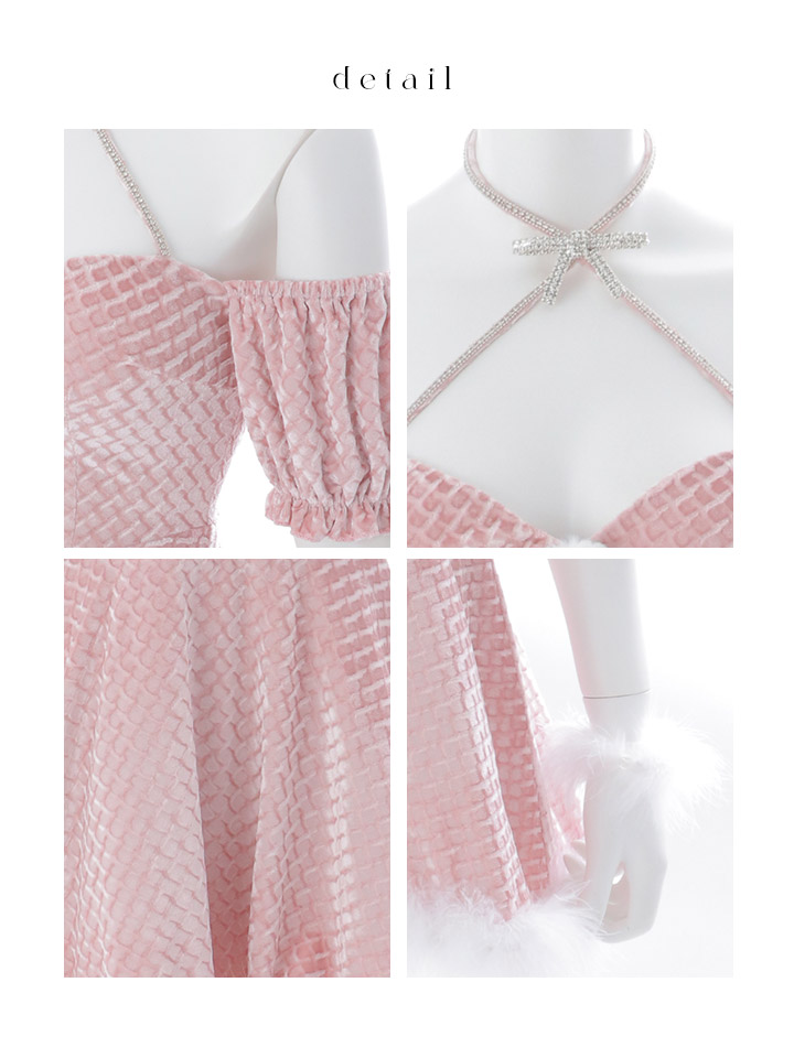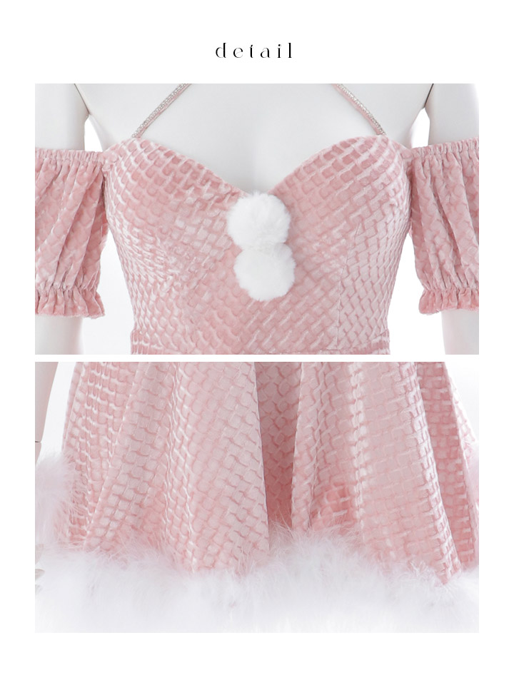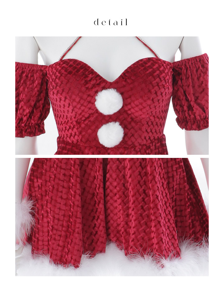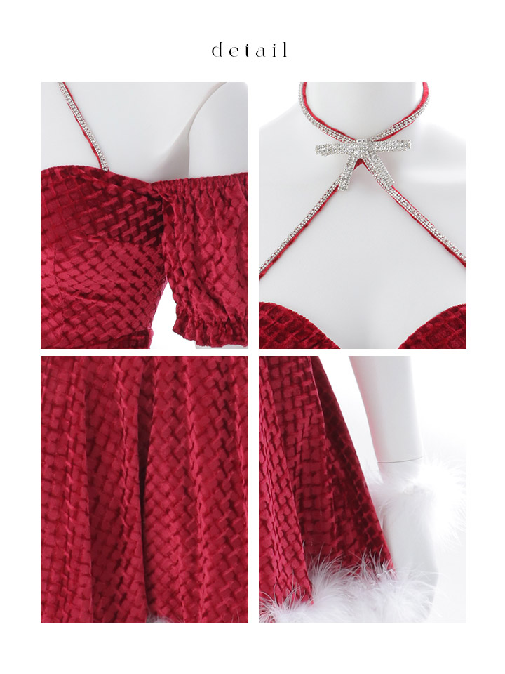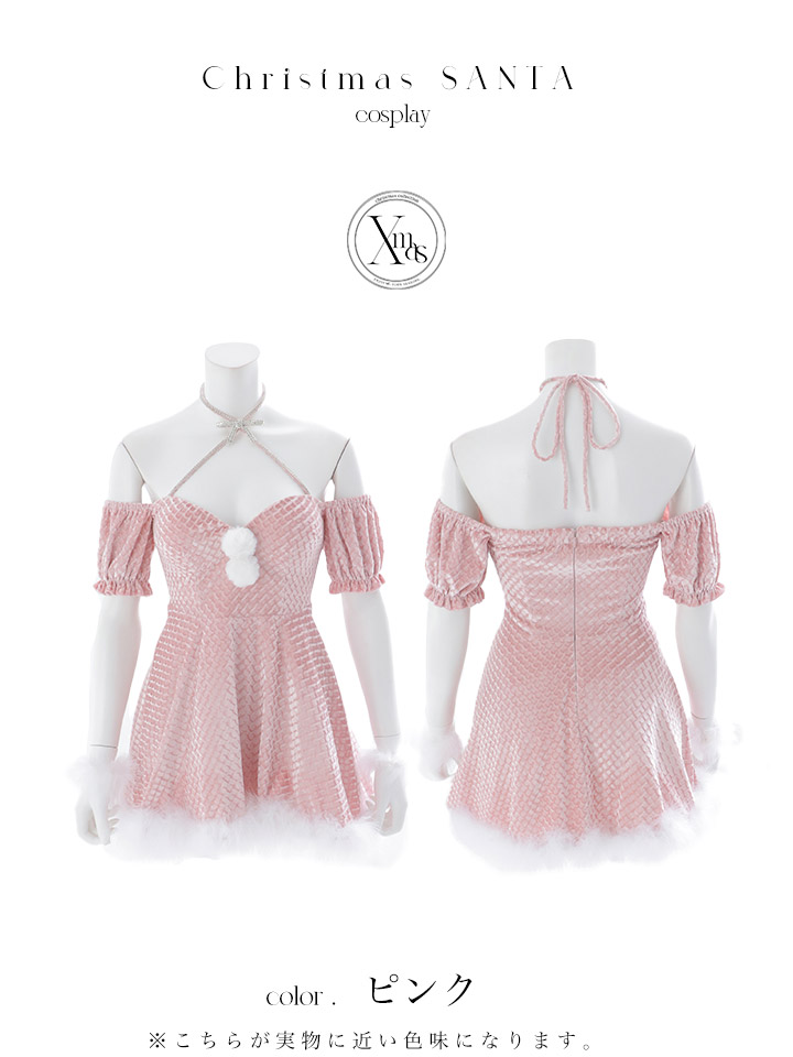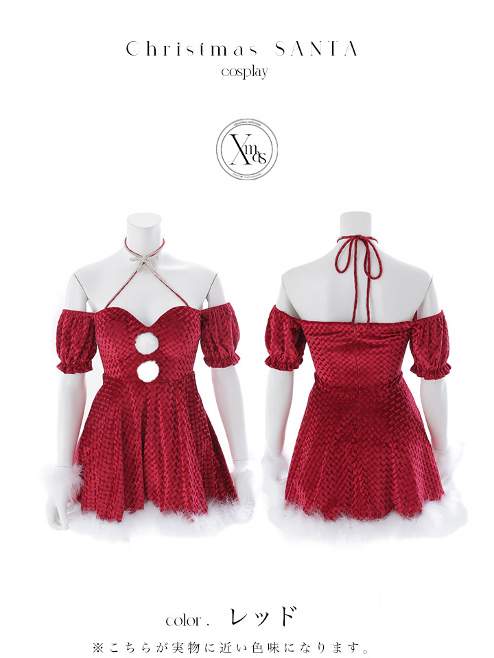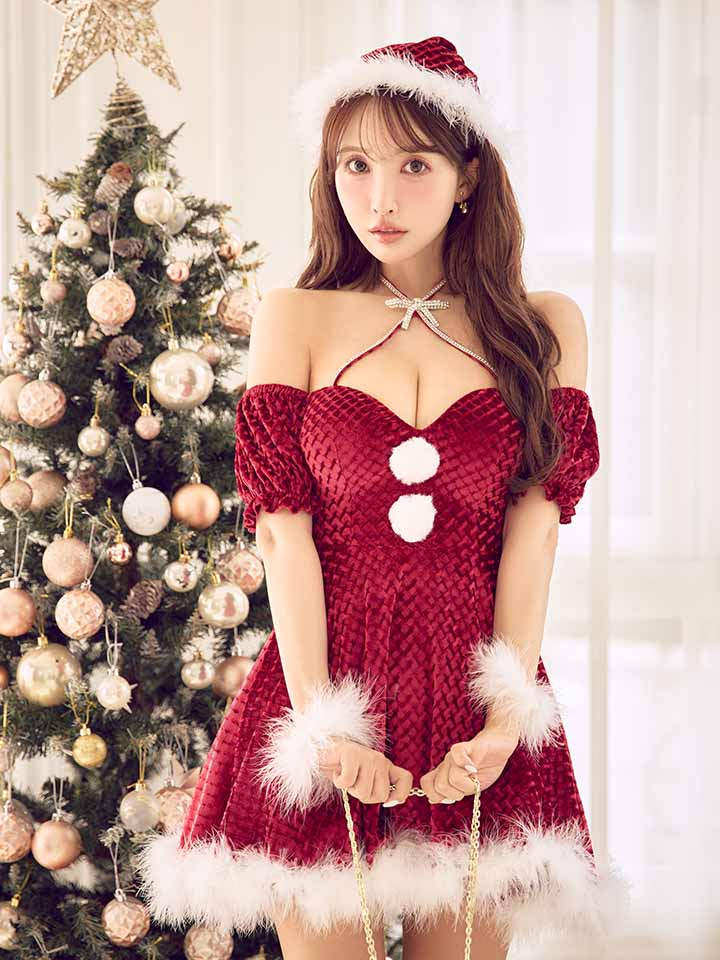 クロスネックがセクシーさを演出する、オフショルサンタコスプレ。