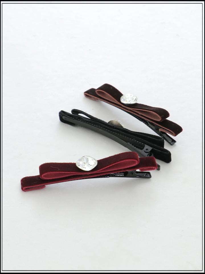 【ヘアアクセサリー】ベロアリボンヘアピン【Fサイズ/3カラー】[OF02]