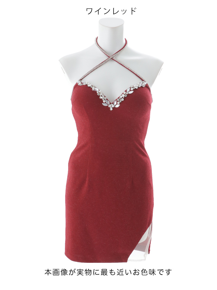 ホルターネックラメビジューストレッチミニドレス/キャバドレス【XS-Mサイズ/1カラー】[OF03] 【YN】dzwvGI [5754YNdzwvGI-251020-1]