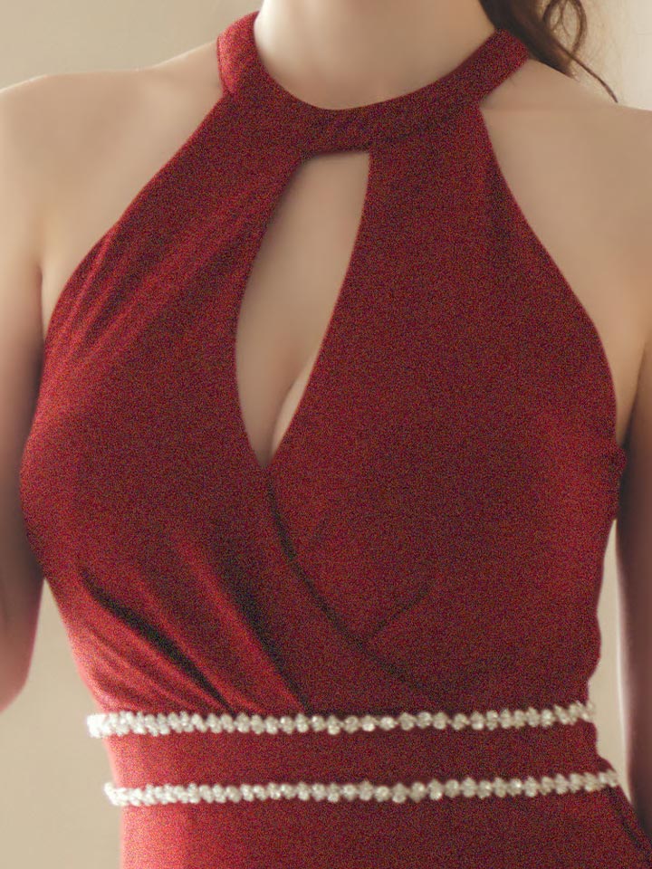 ウエストのビジューがポイントボディラインを強調◎