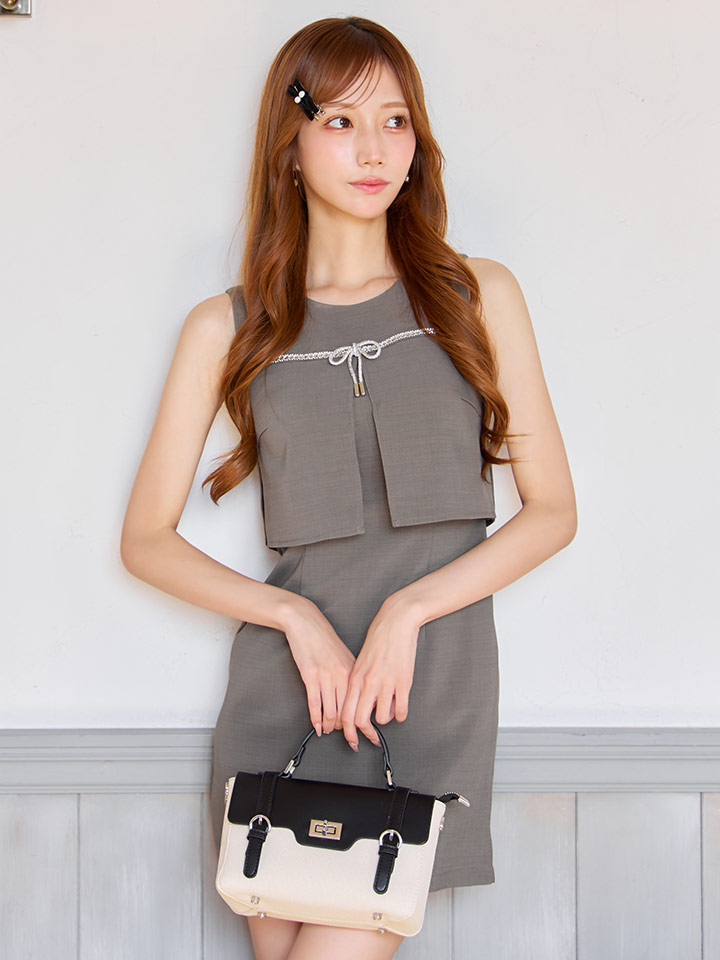 ビジューリボンセットアップ風タイトミニドレス/キャバドレス【XS-Mサイズ/1カラー】[OF03] 【YN】dzwvIA [5764YNdzwvIA-251024-1]