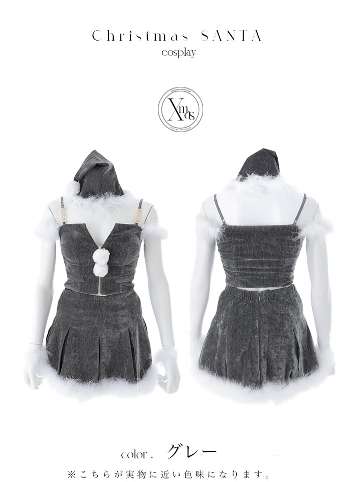 【ノベルティ対象】【即日発送】【サンタ】ファーショルダーシースルーフレアサンタコスプレ【コスプレ5点セット】【XS-XLサイズ/2カラー】[OF04] [SS-186-YN-dzw-BR-25AS]