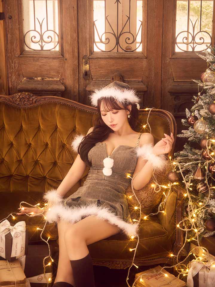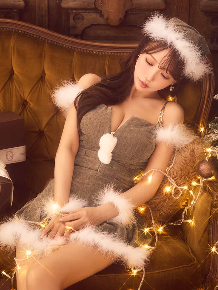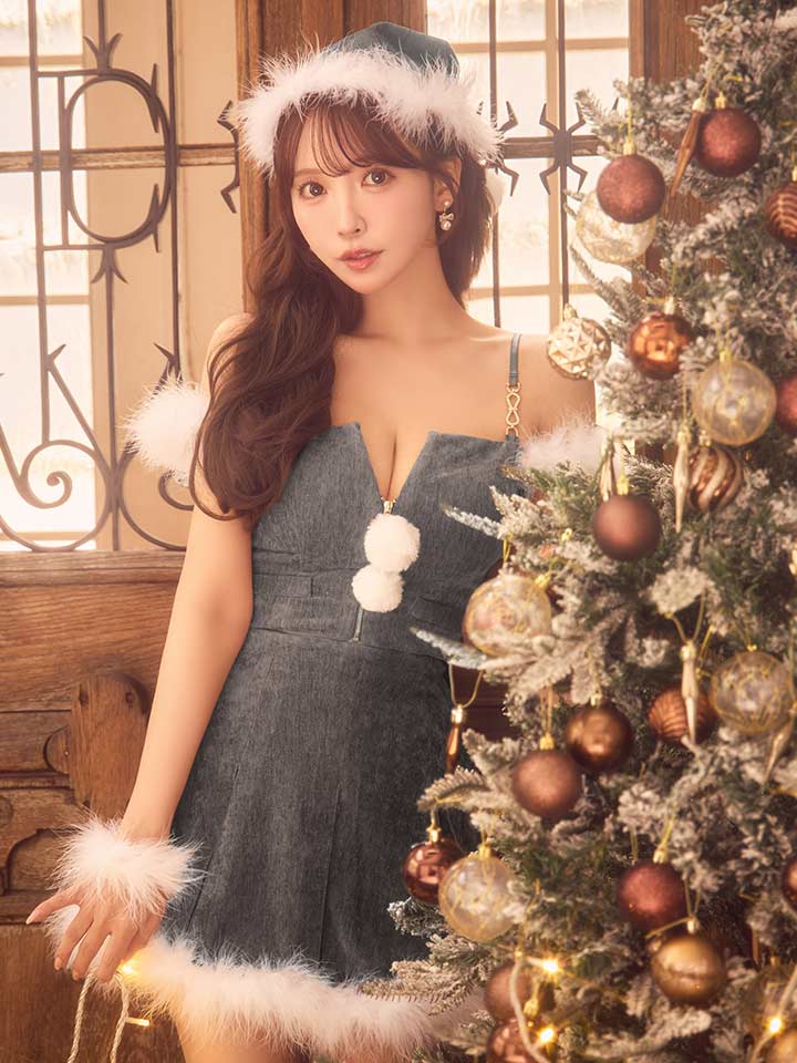 ブラウン グレー クリスマス ビジュー ベロア ドレス ファー付きワンピース キャバドレスクリスマス イベントドレス
