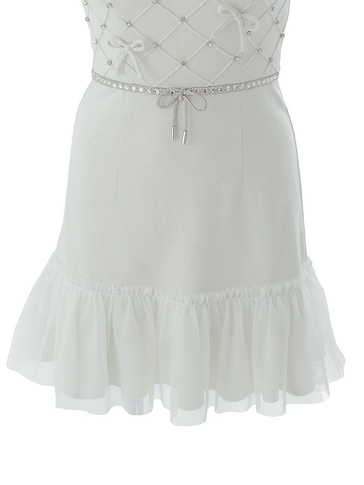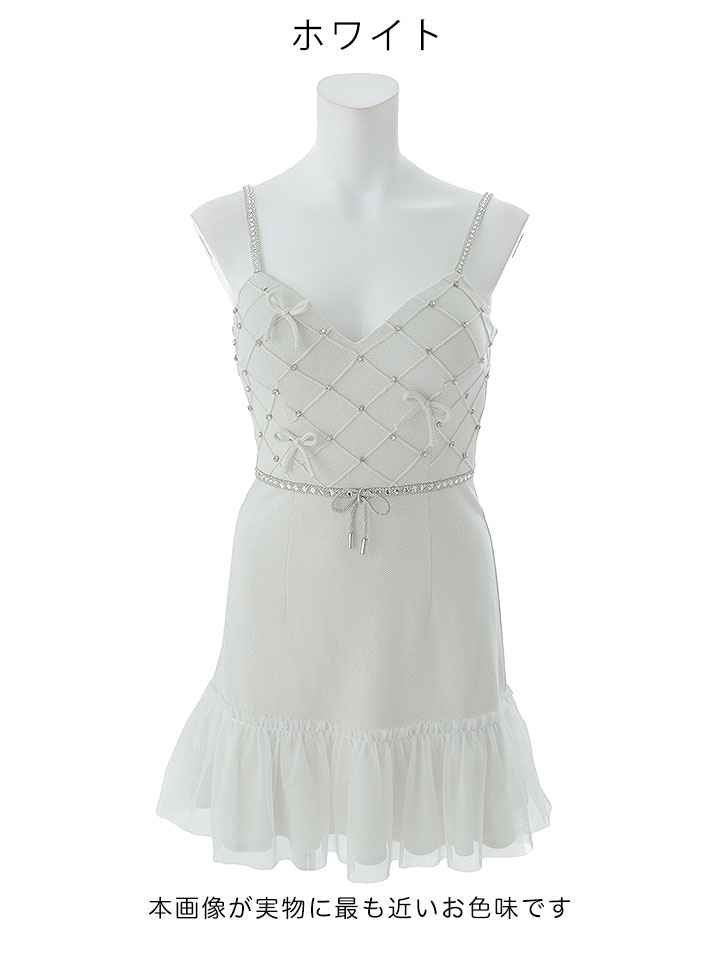 つぶつぶビジューがきらめく甘めのミニドレス。