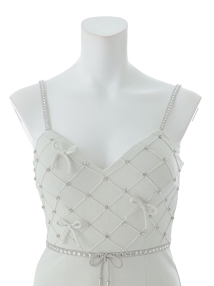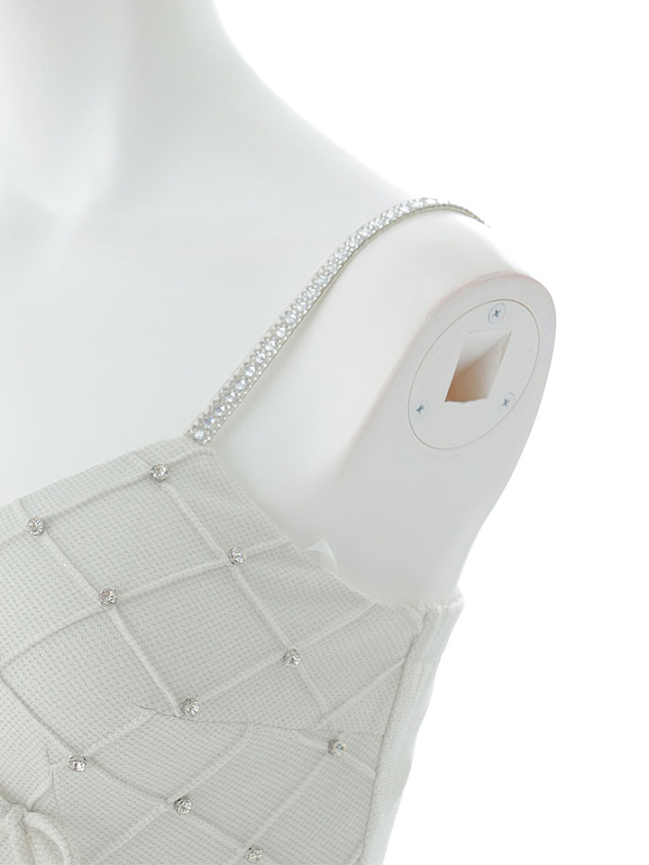 #ホワイト #ミニドレス/ミニ丈 #ストレッチ ラメ(グリッター) #キャミ #谷間見せ(魅せ) #背中見せ(魅せ) #Aライン・フレアスカート #スイート・可愛い(かわいい)系