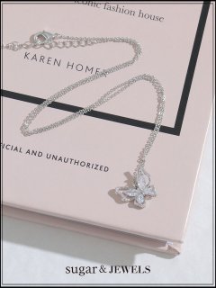 バタフライととドロップ型のストーンが煌めくネックレス。