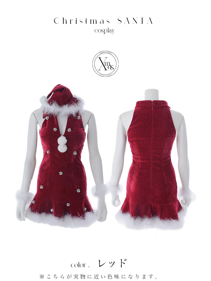 【即日発送】【サンタ】スパンコールフラワーサンタコスプレ【コスプレ4点セット】【XS-Lサイズ/2カラー】[OF03]