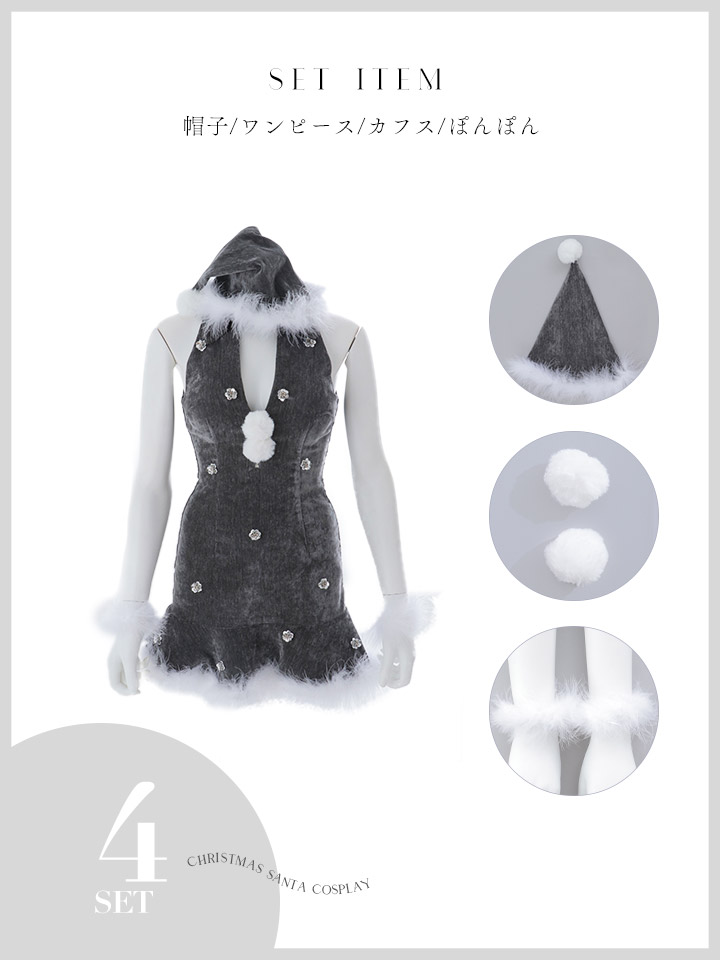 【即日発送】【サンタ】スパンコールフラワーサンタコスプレ【コスプレ4点セット】【XS-Lサイズ/2カラー】[OF03] [SS-190-YN-dzw-R-25AS]