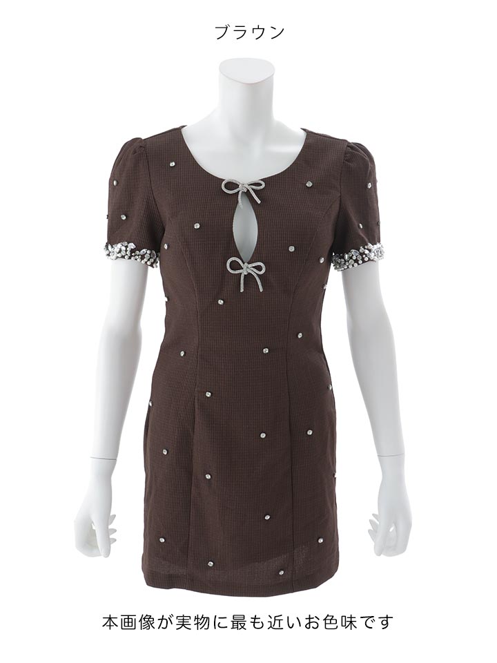 【送料無料】新色登場!リボンビジュー半袖タイトミニドレス/キャバドレス【XS-XLサイズ/4カラー】[OF01A] 【SB】dzwoBF [3325SBdzwoBF-251022-1]
