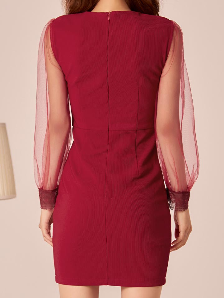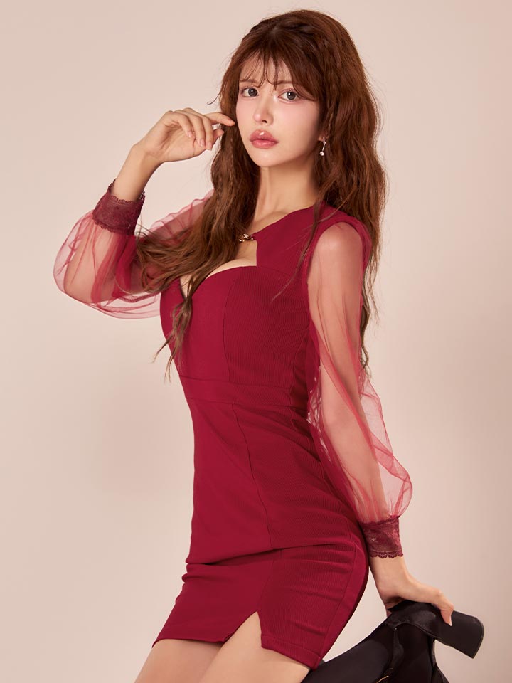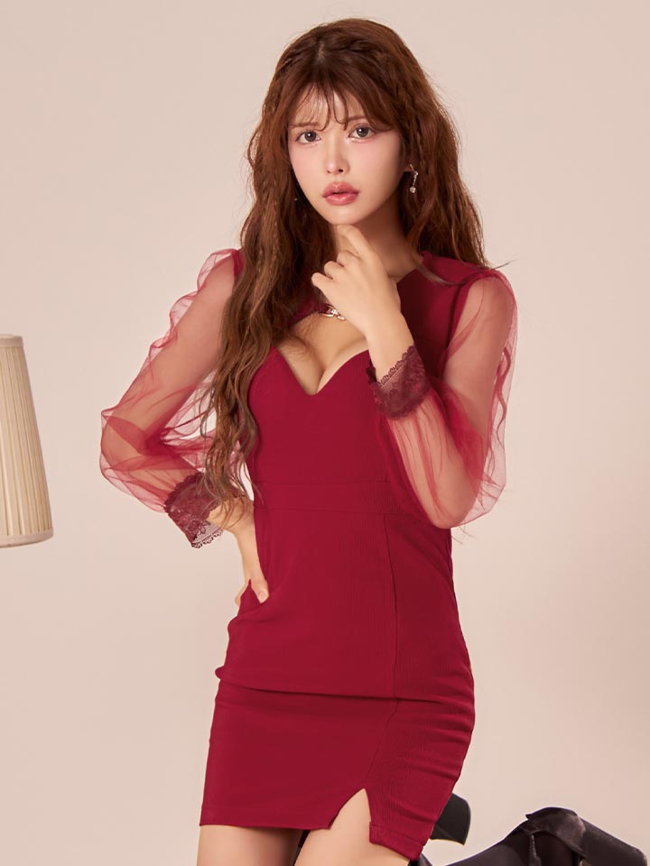 シアースリーブストレッチタイトミニドレス/キャバドレス【XS-Lサイズ/2カラー】[OF03B] 【IM】 [J-902IM-241023-1]