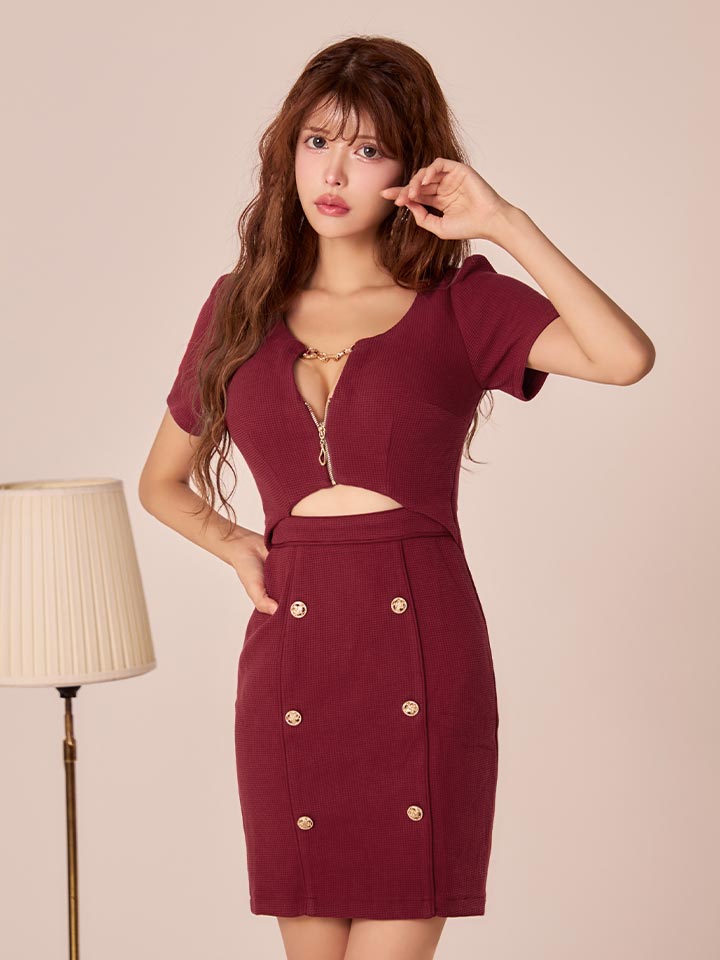 新色&新サイズ登場! ジップアップワッフルタイトミニドレス/キャバドレス【XS-XLサイズ/8カラー】[OF03-X] 【YN】dzw