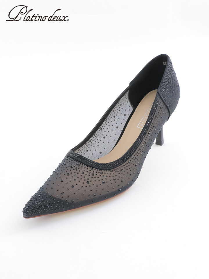パンプスの窮屈さを感じさせないメッシュのチュール素材は足になじみやすく足当たりの良さを実感する履き心地。