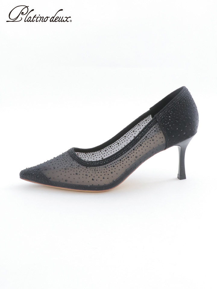シャープなポインテッドトゥに細めの8cmピンヒールで脚長、美脚効果もあり、ラインストーンが歩くたびにキラキラと輝きドレッシーなスタイリングをより華やかに演出してくれます。