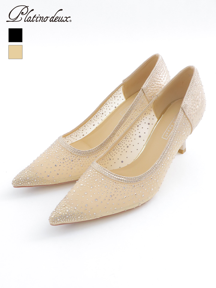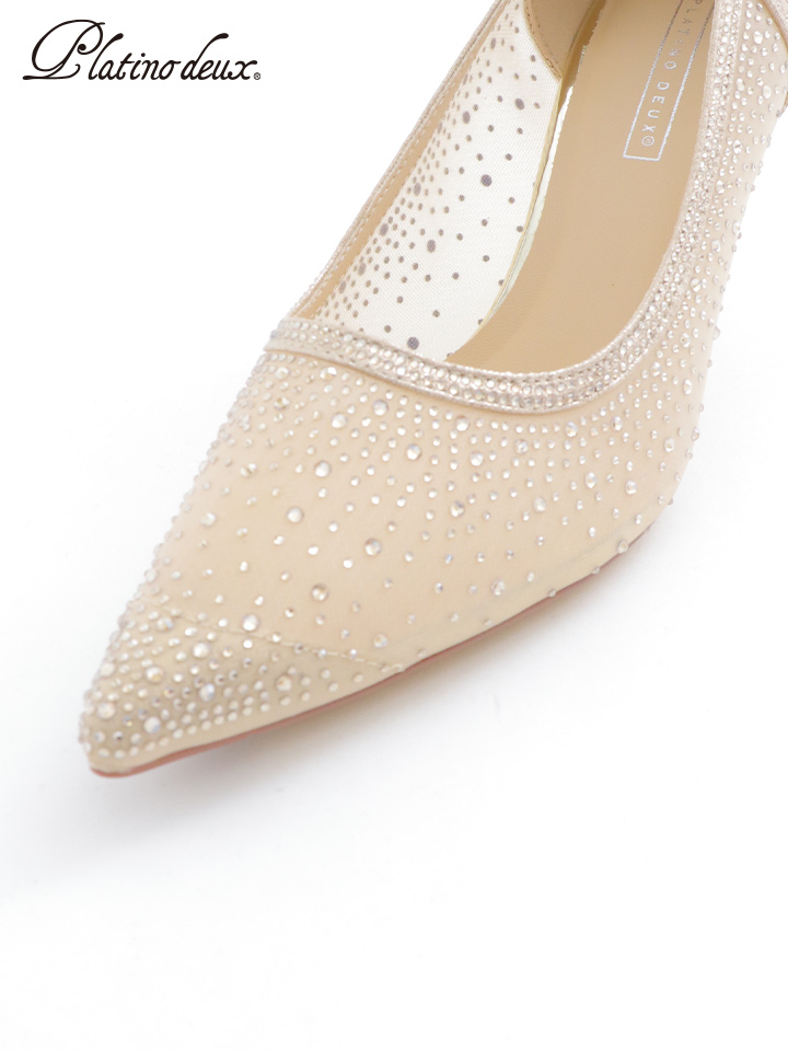 ラメとラインストーンを贅沢に散りばめた華やかなチュールパンプス