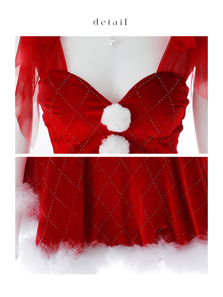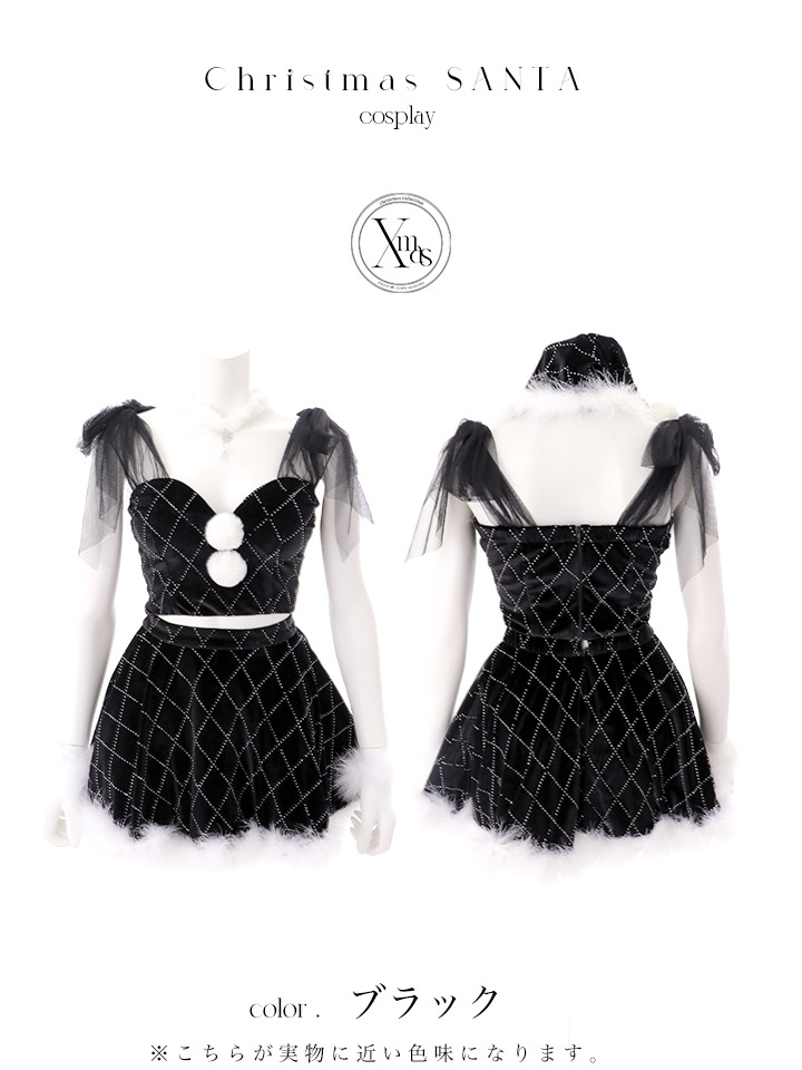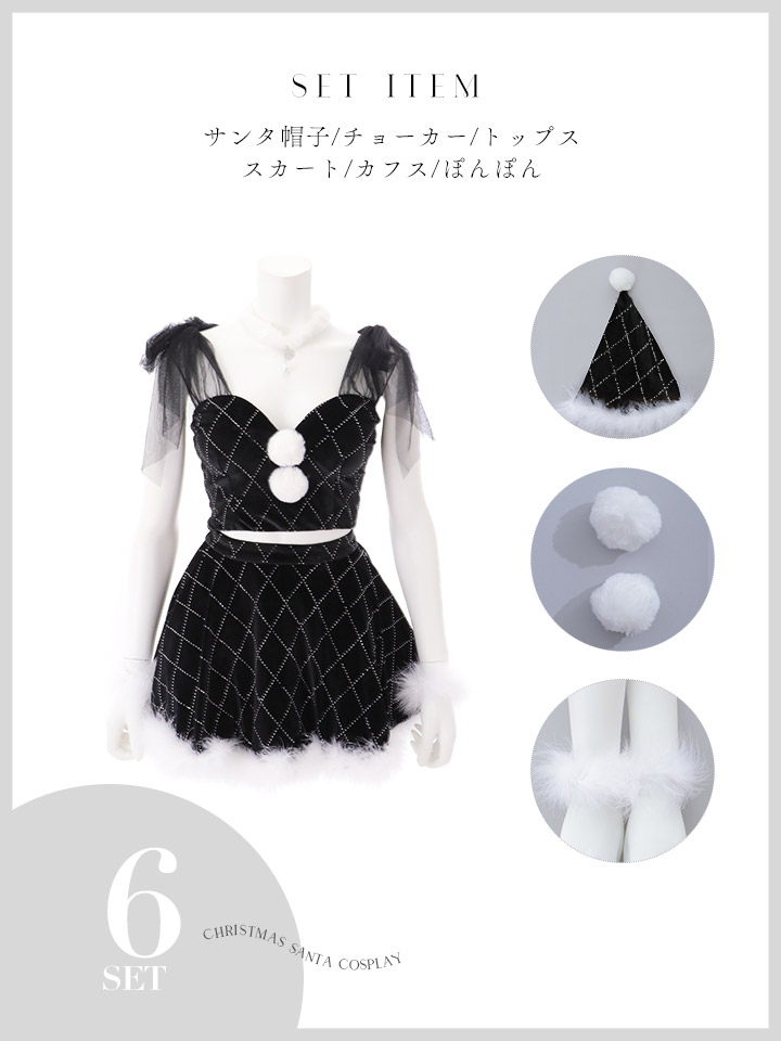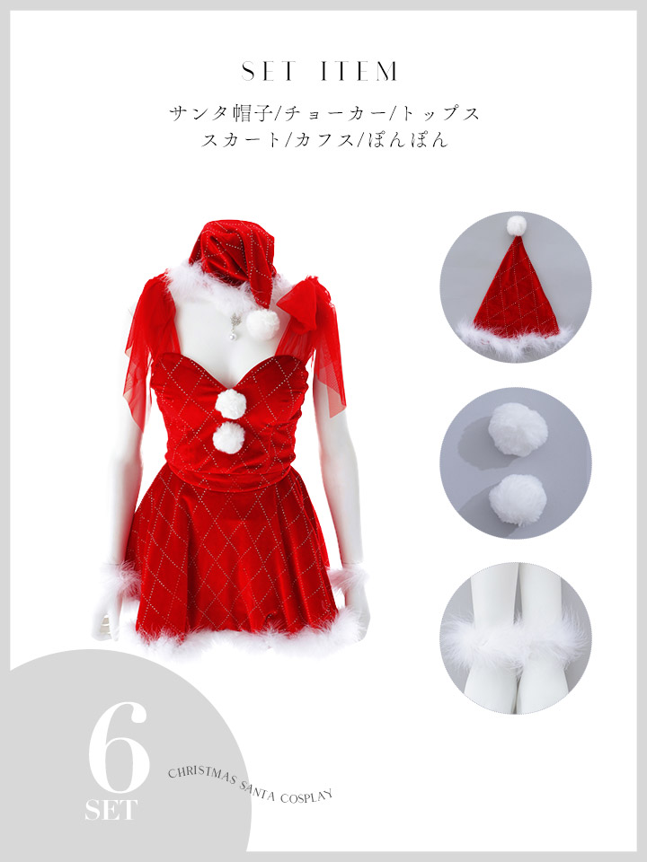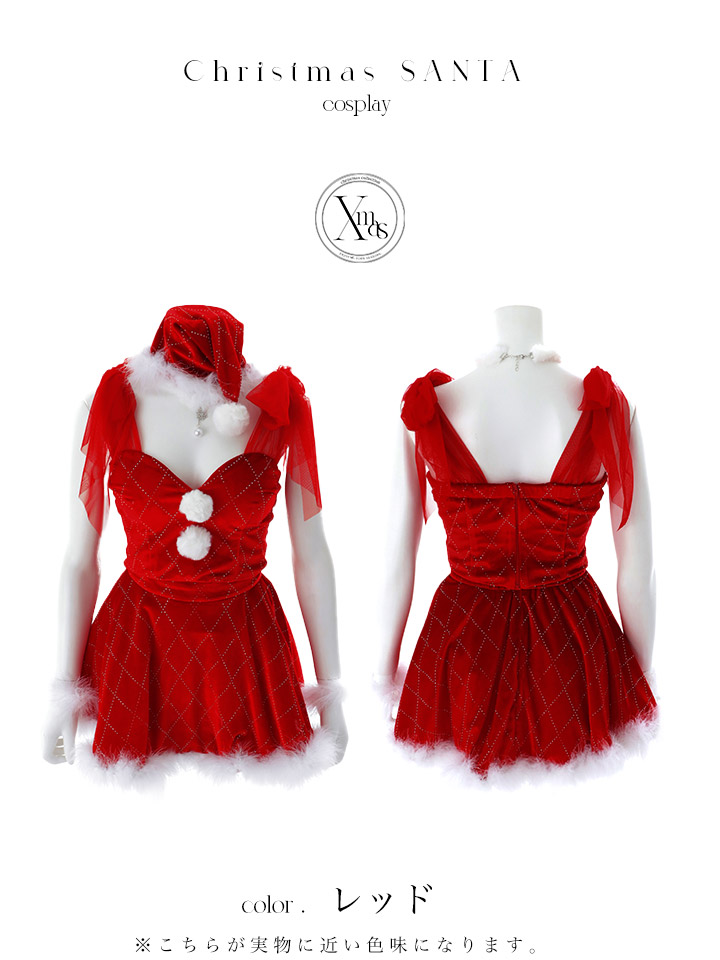 【ノベルティ対象】【即日発送】【送料無料】【サンタ】チュールリボンアーガイル風サンタコスプレ【コスプレ6点セット】【XS-XLサイズ/3カラー】[OF01] [SS-182-YN-dzw-R-25AS]