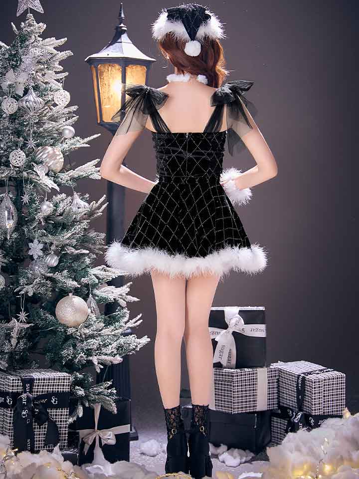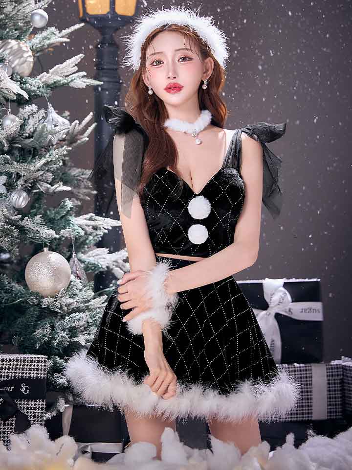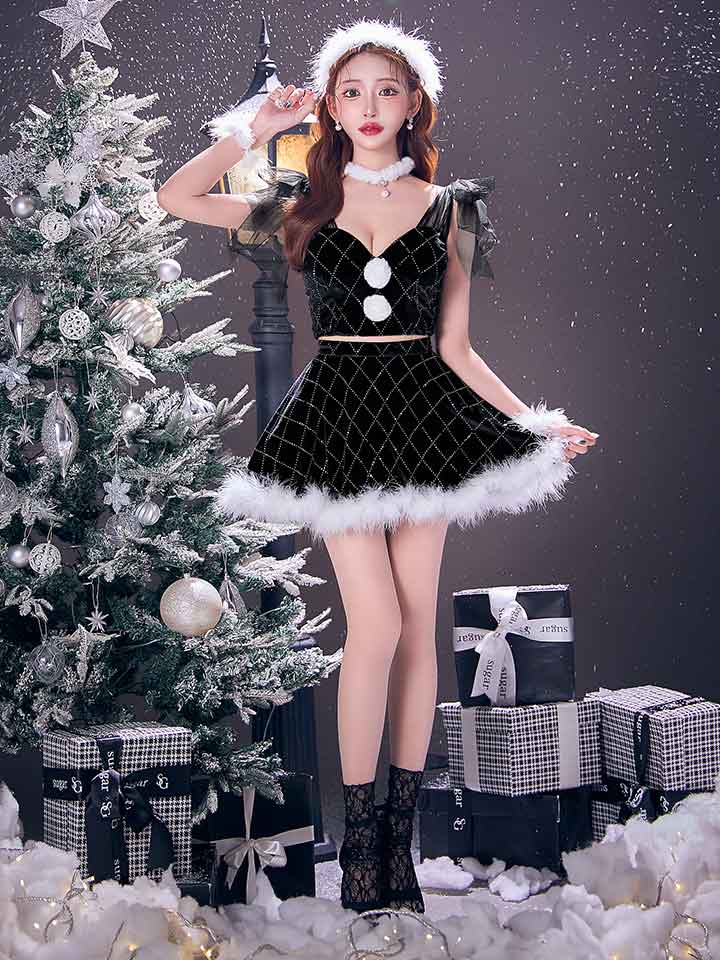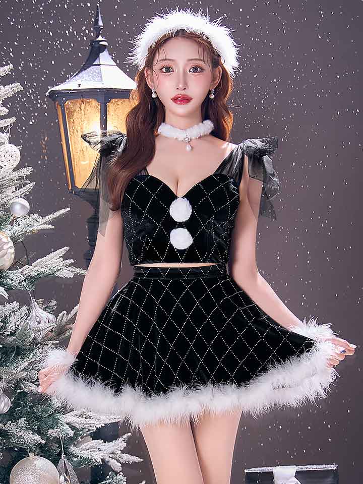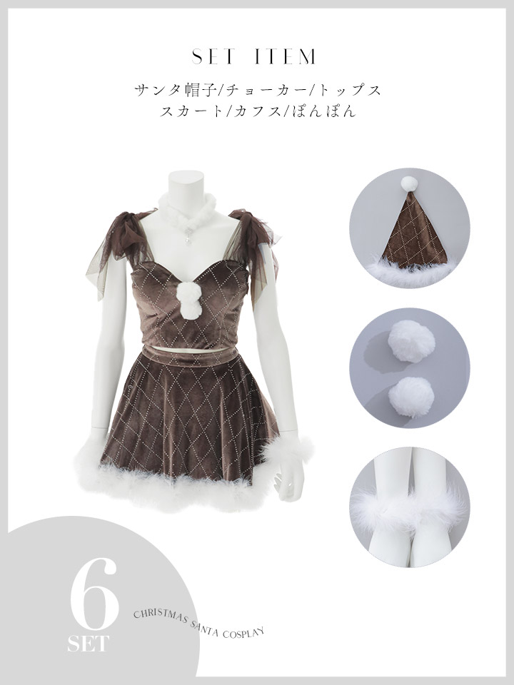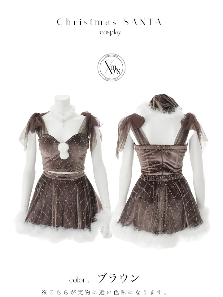 【ノベルティ対象】【即日発送】【送料無料】【サンタ】チュールリボンアーガイル風サンタコスプレ【コスプレ6点セット】【XS-XLサイズ/3カラー】[OF01] [SS-182-YN-dzw-R-25AS]