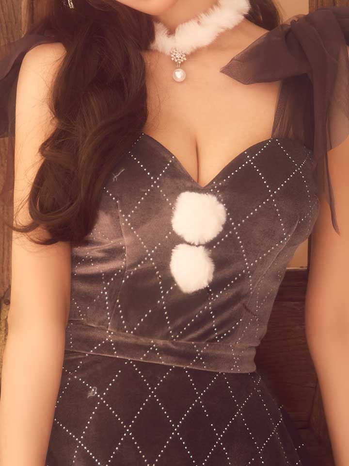 ベージュブラウン 茶色 スカート ミニスカート フレアスカート 胸盛り