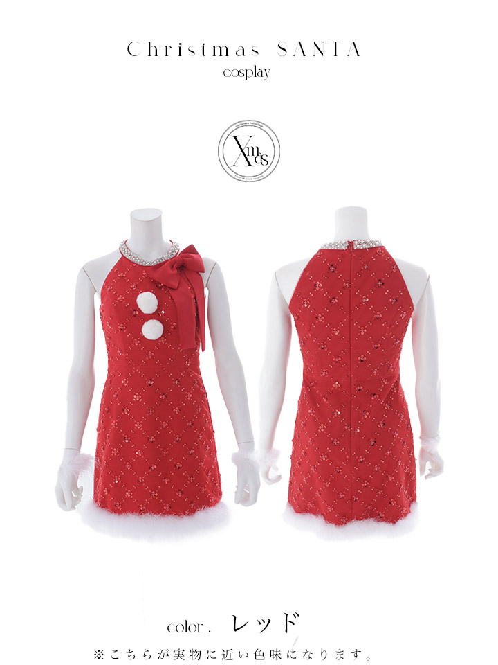 【予約 / 11月中旬発送予定】【送料無料!】【サンタ】サイドリボンツイードビジューサンタコスプレ【コスプレ5点セット】【XS-Lサイズ/2カラー】[OF03] [SS-201-SB-dzw-R-25RM]