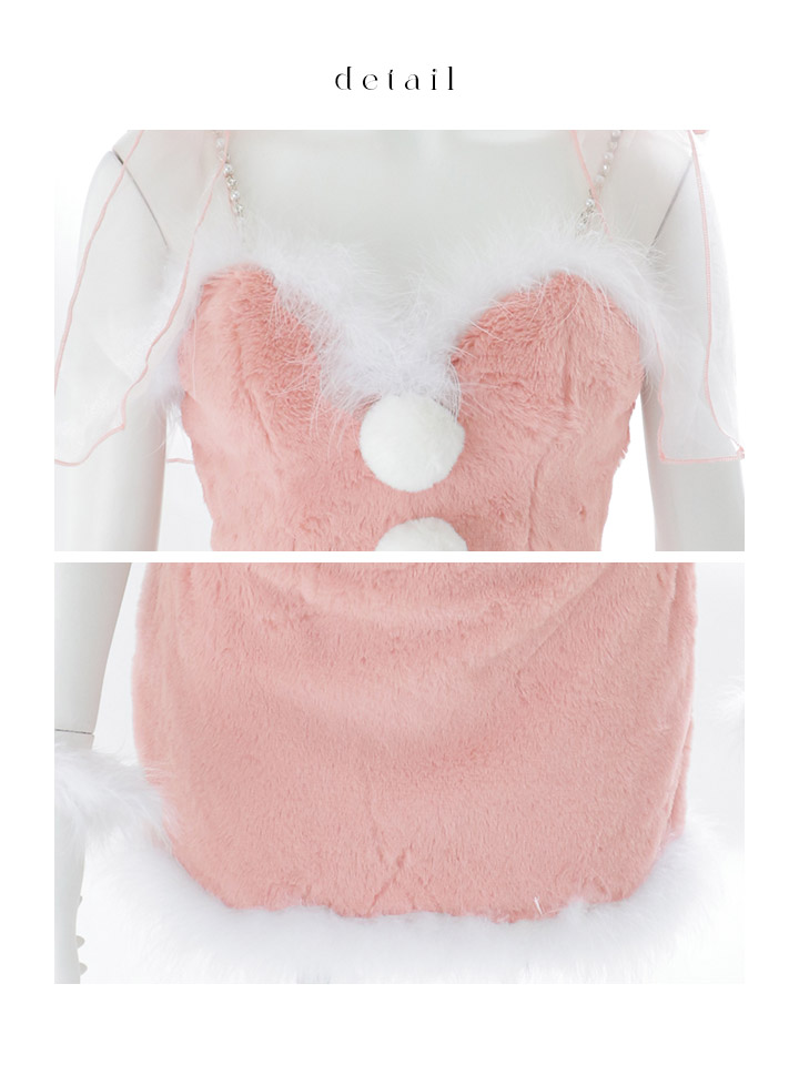 ふわふわのファーをあしらった大人可愛いサンタセットアップ。