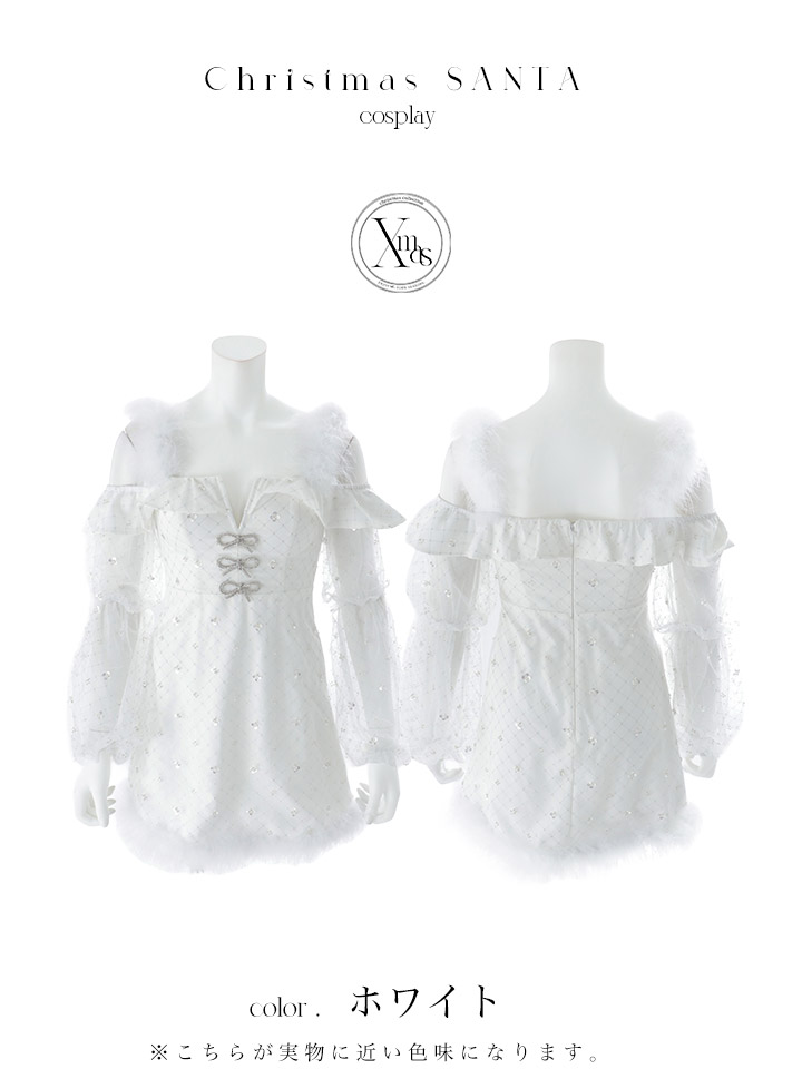 【即日発送】【送料無料!】【サンタ】オフショルチュール袖リボンサンタコスプレ【コスプレ2点セット】【XS-Lサイズ/1カラー】[OF01] [SS-193-SB-dzw-W-25PO]