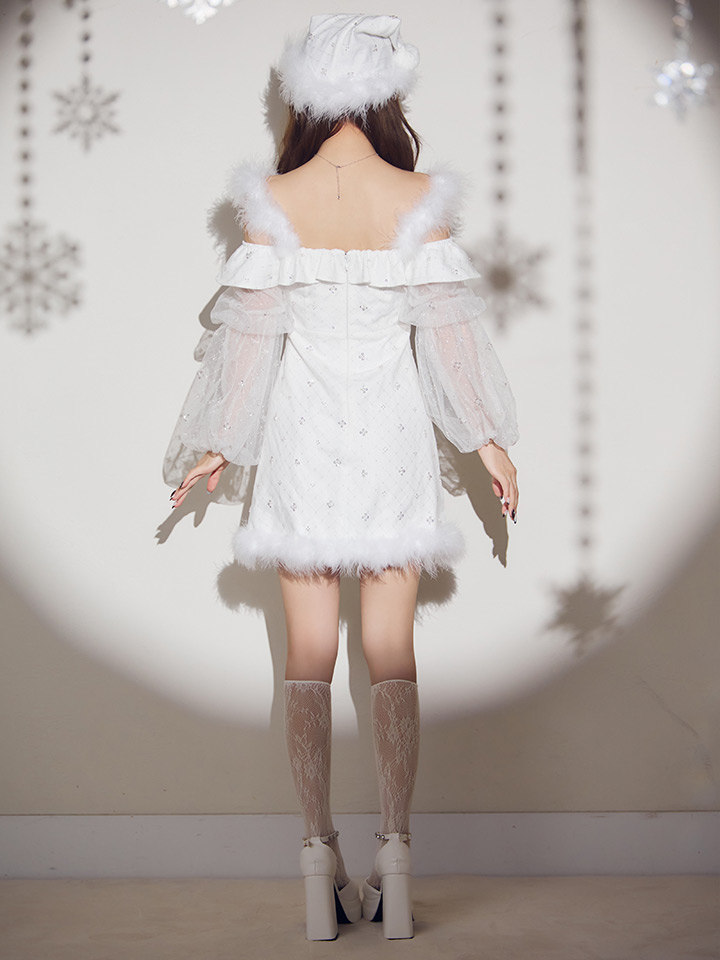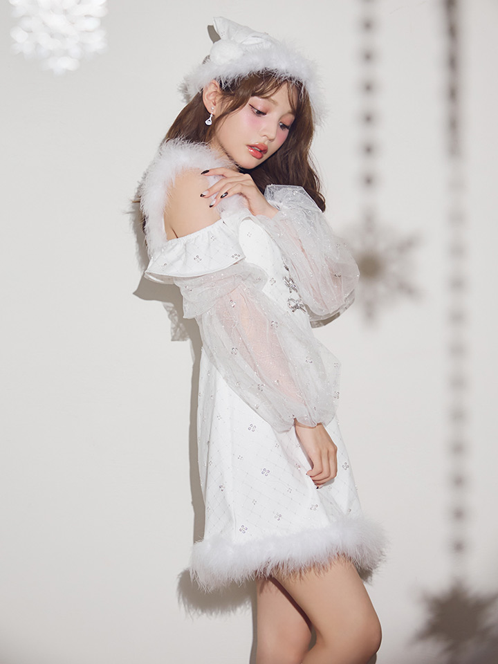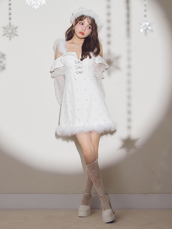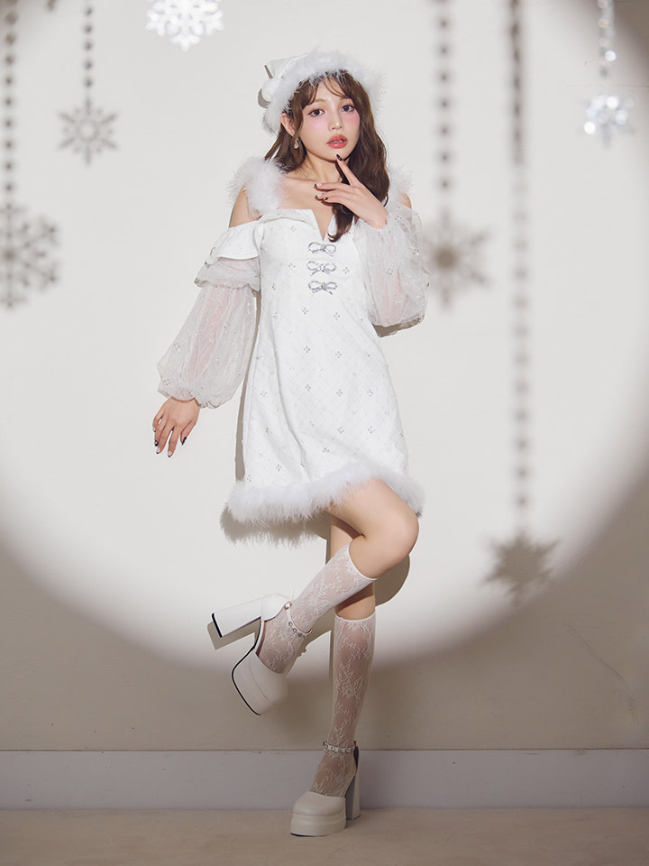 【予約 / 11月下旬発送予定】【送料無料!】【サンタ】オフショルチュール袖リボンサンタコスプレ【コスプレ3点セット】【XS-Lサイズ/1カラー】[OF03] [SS-193-SB-dzw-W-25PO]