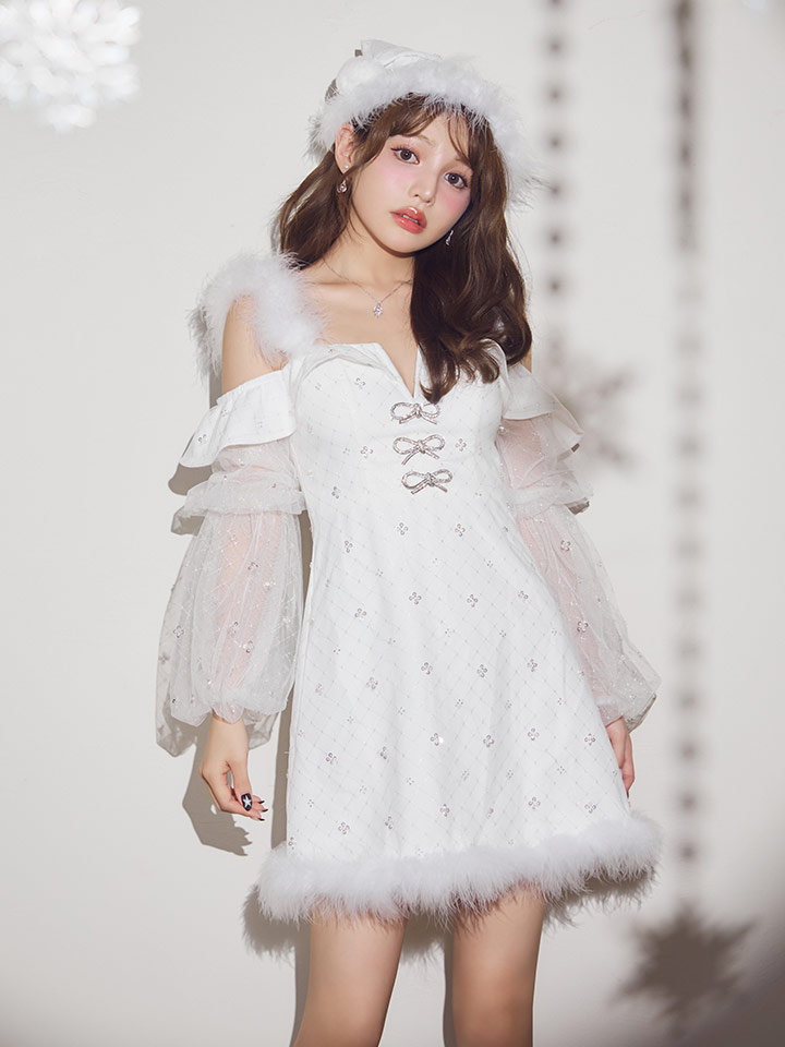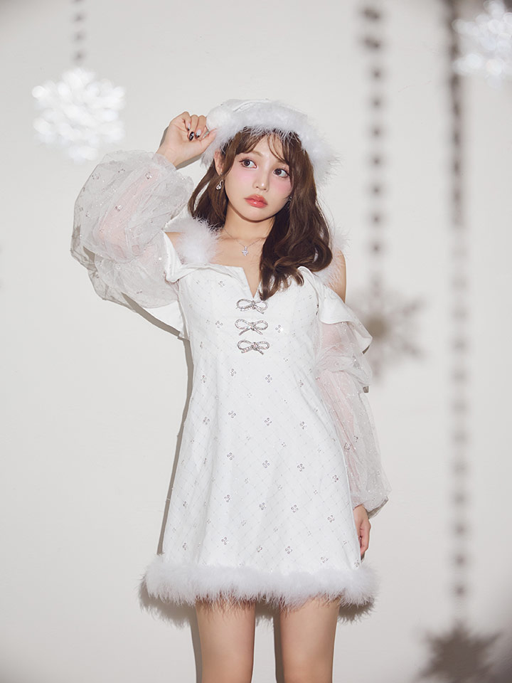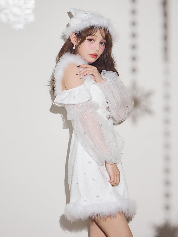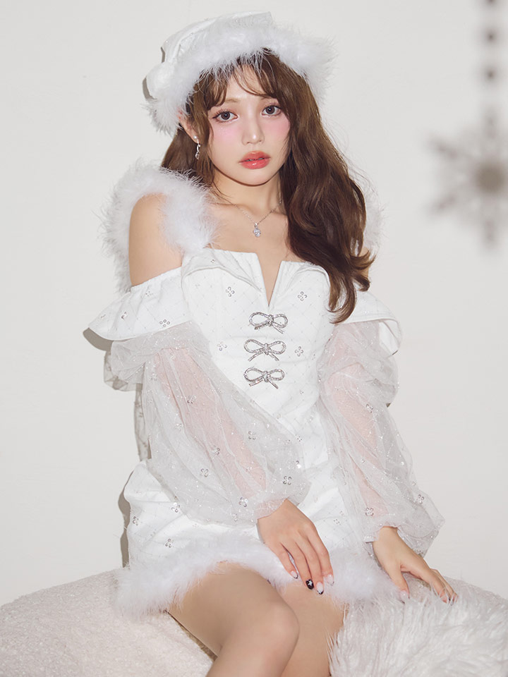 【予約 / 11月下旬発送予定】【送料無料!】【サンタ】オフショルチュール袖リボンサンタコスプレ【コスプレ3点セット】【XS-Lサイズ/1カラー】[OF03]