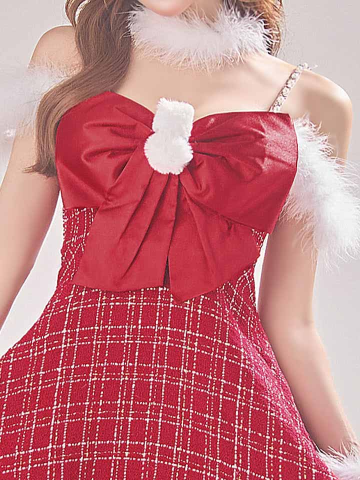 - > 【ノベルティ対象】【即日発送!】【サンタコス 5点セット】【S-XLサイズ/1カラー】リボンキャミソールフレアツイードサンタコスプレ[YMT]