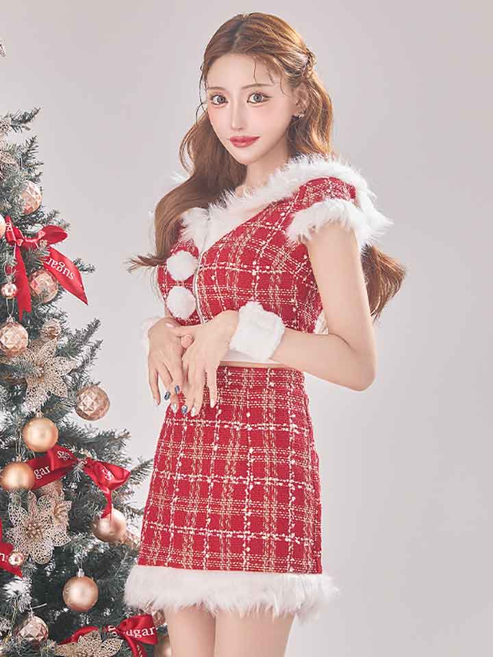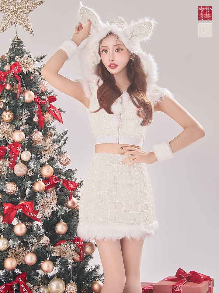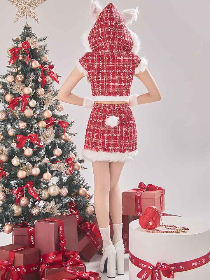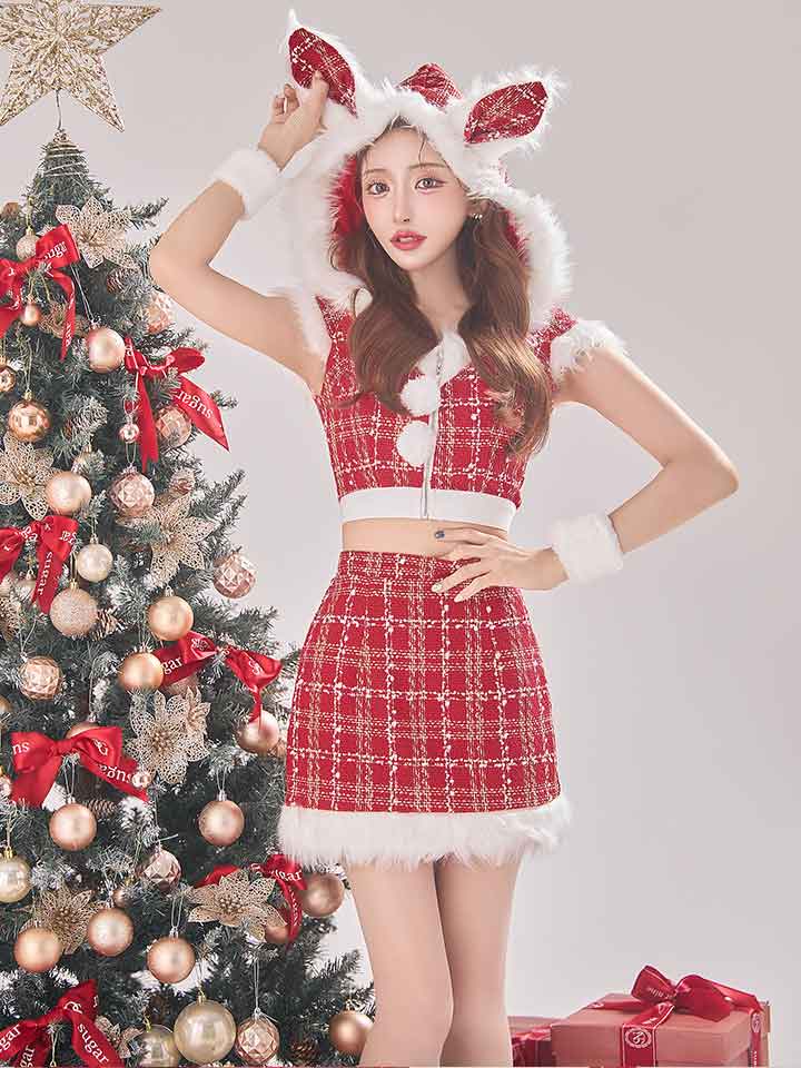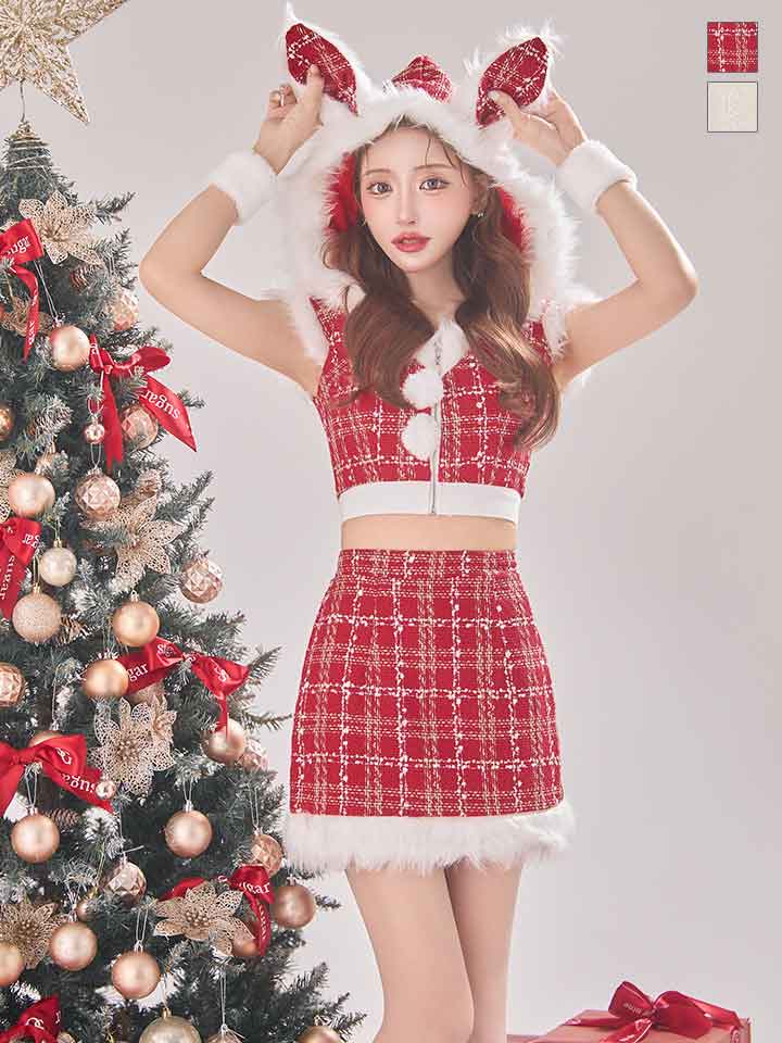 - > 【即日発送!】【サンタコス5点セット】【XS-XLサイズ/2カラー】ツイードチェックバニーサンタコスプレ[YMT]