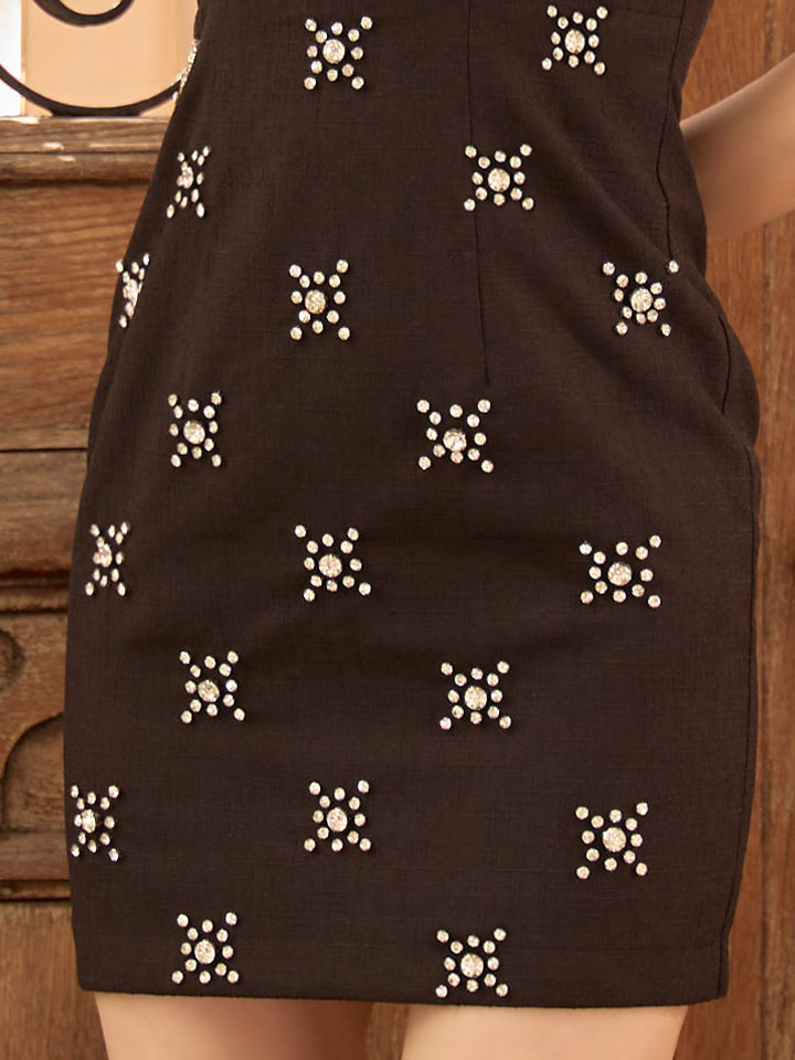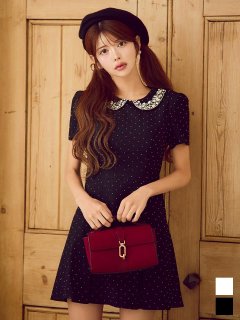 全体に散りばめられたビジューが華やかに輝くミニドレス。