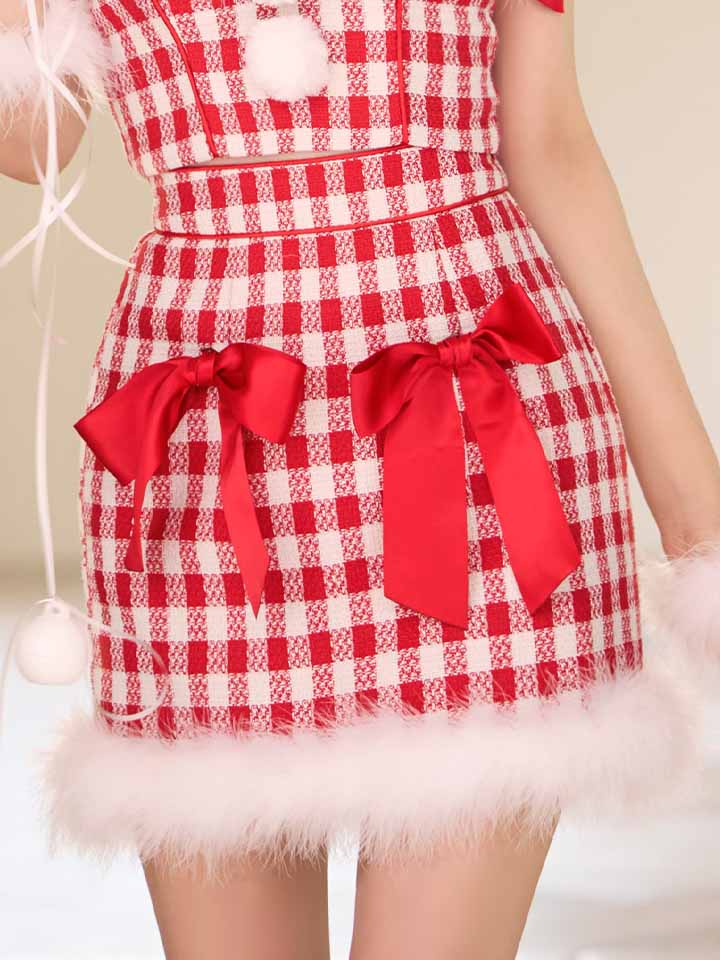 #ギンガムチェック #チェック柄 #リボン #りぼん #タイト #ツイード #セットアップ #クリスマス #パーティ #サンタコス #サンタさん