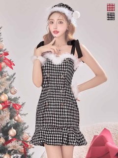 - > 【サンタコス 5点セット】【XS-XLサイズ/2カラー】ギンガムチェック タイトワンピースサンタコスプレ[YMT]