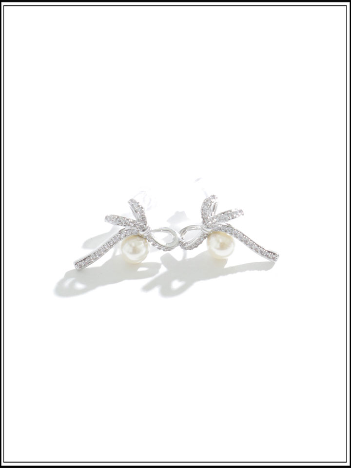 【ピアス】ビジューリボンパールピアス【Fサイズ/1カラー】[OF02] 【YN】 [PI139-251030-1]