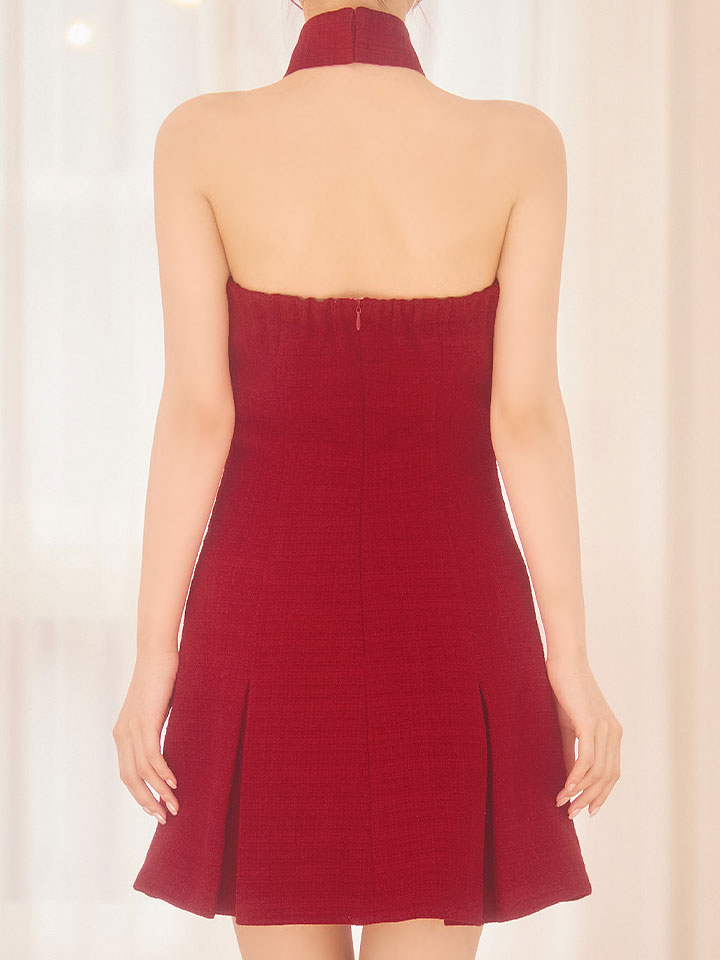 上品なツイード生地に大きめビジューが散りばめられた、華やかなミニ丈ドレス。