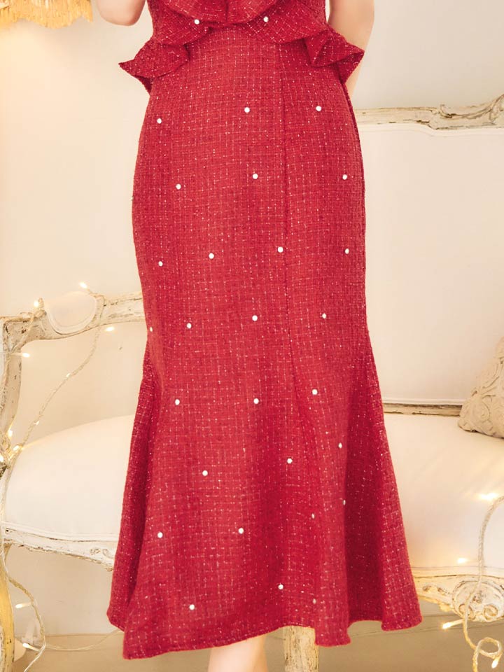 【送料無料!】フロントリボンビジューツイードミディアムドレス/キャバドレス【S-Mサイズ/1カラー】[OF03]【YN】dzw [5188YNdzw-251101-1]
