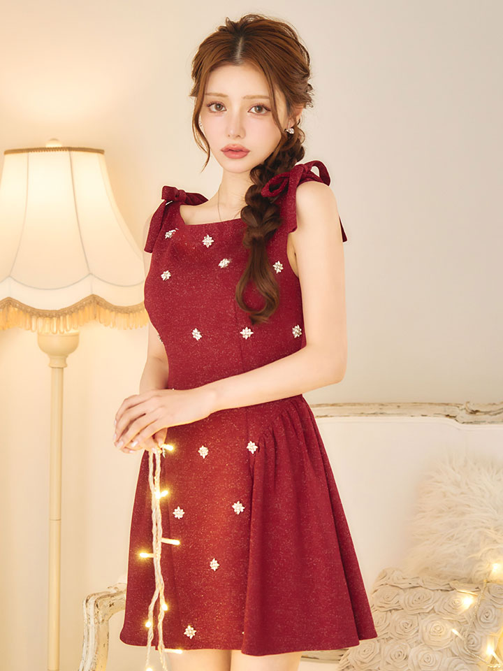 新色登場!ショルダーリボンビジューフレアミニドレス/キャバドレス【XS-Lサイズ/3カラー】[OF03] 【YN】dzwvIA [5715YNdzwvIA-251101-1]
