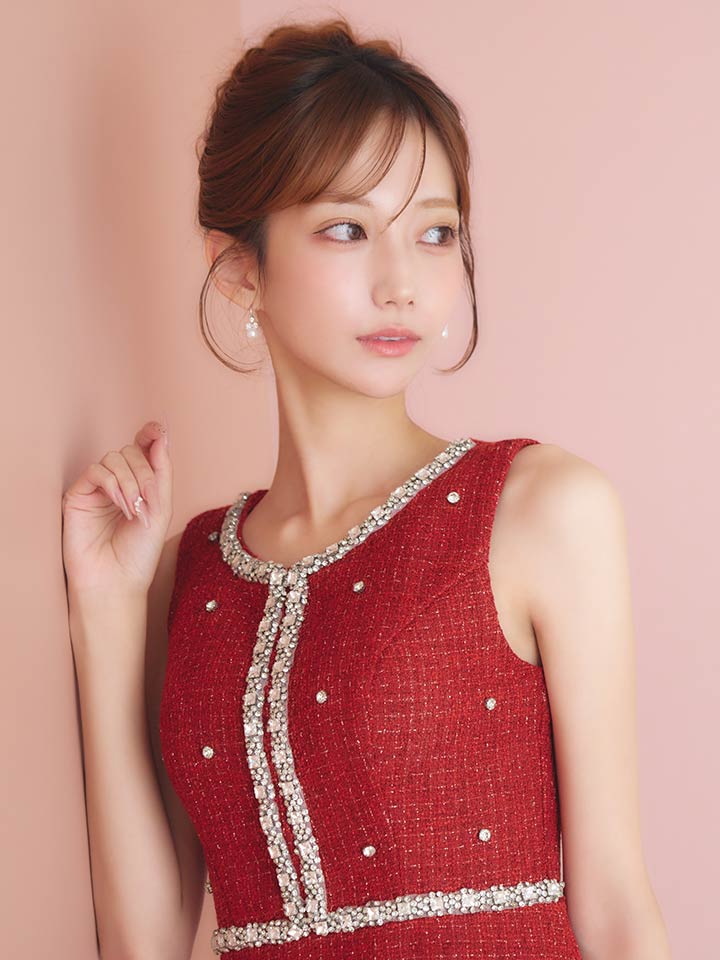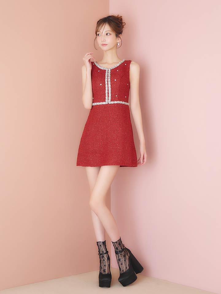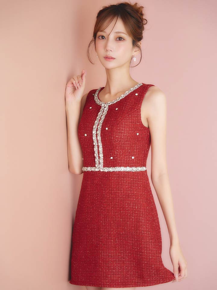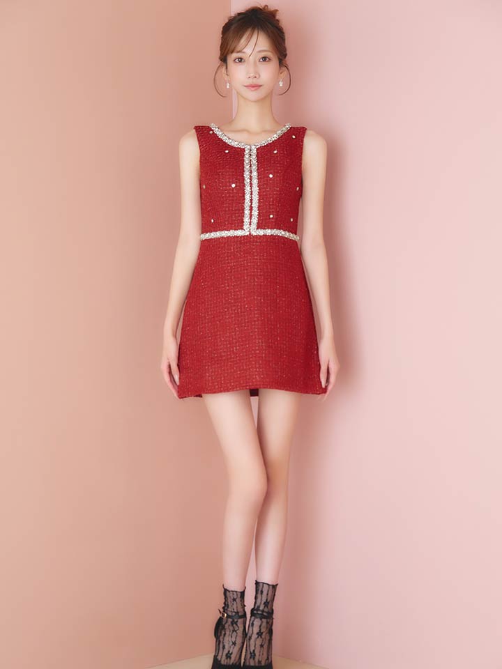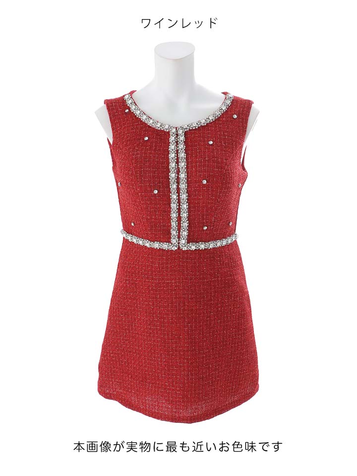 ツイードビジューノースリーブミニワンピースドレス/キャバドレス【XS-XLサイズ/1カラー】[OF01] 【SB】dzwvIA [3496SBdzwvIA-251105-1]