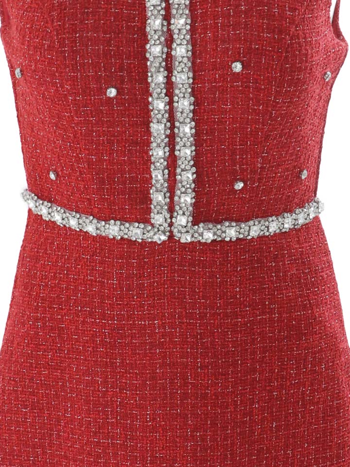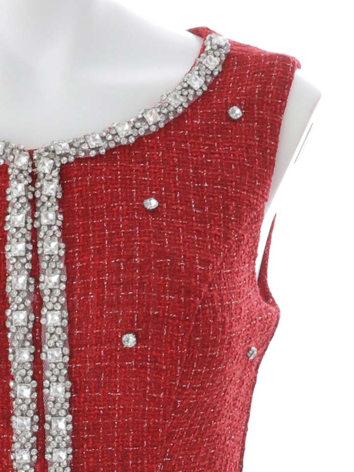 ツイードのきらめきとビジューの輝きが織りなす、まるで宝石のような一着。