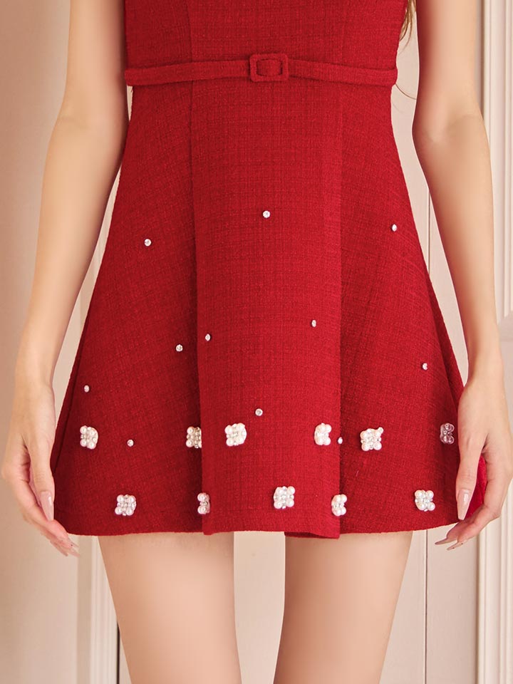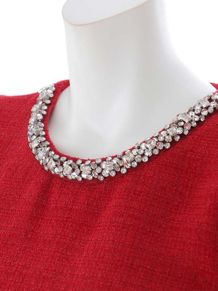 ツイードの上品な質感に、ビジューやパールがさりげなく輝いて、華やかさをプラス。