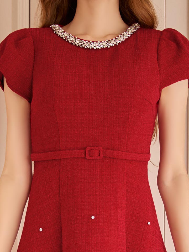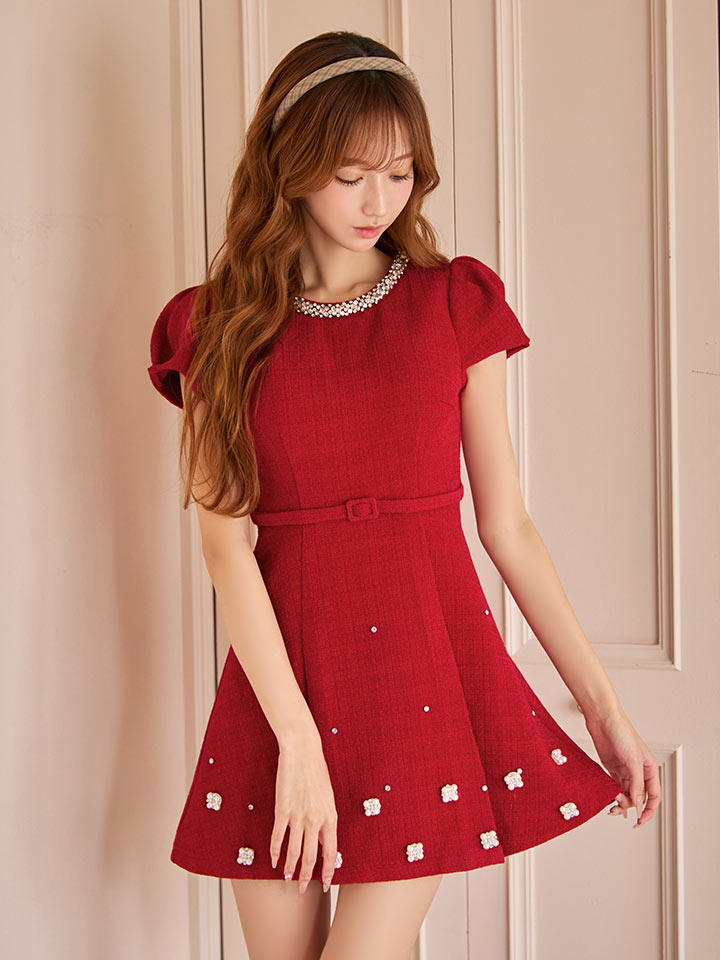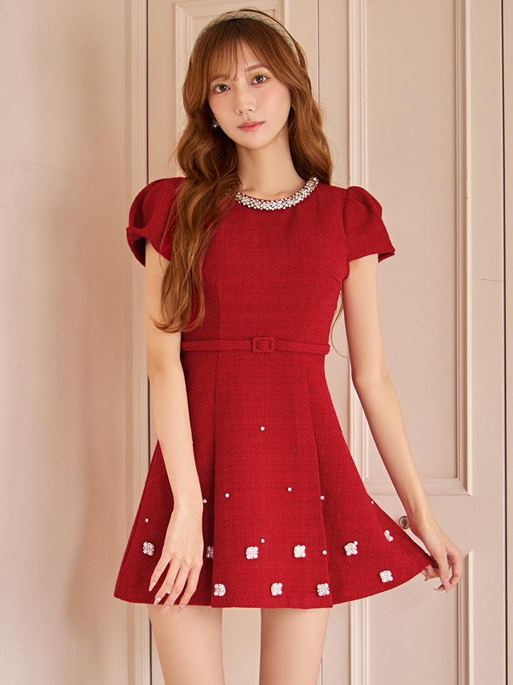 パフスリーブビジューツイードミニワンピースドレス/キャバドレス【XS-Lサイズ/1カラー】[OF03] 【YN】dzwvIA [5781YNdzwvIA-251105-1]