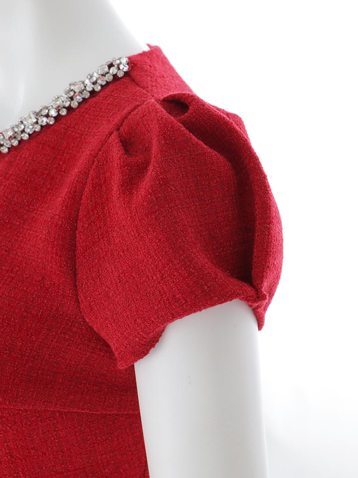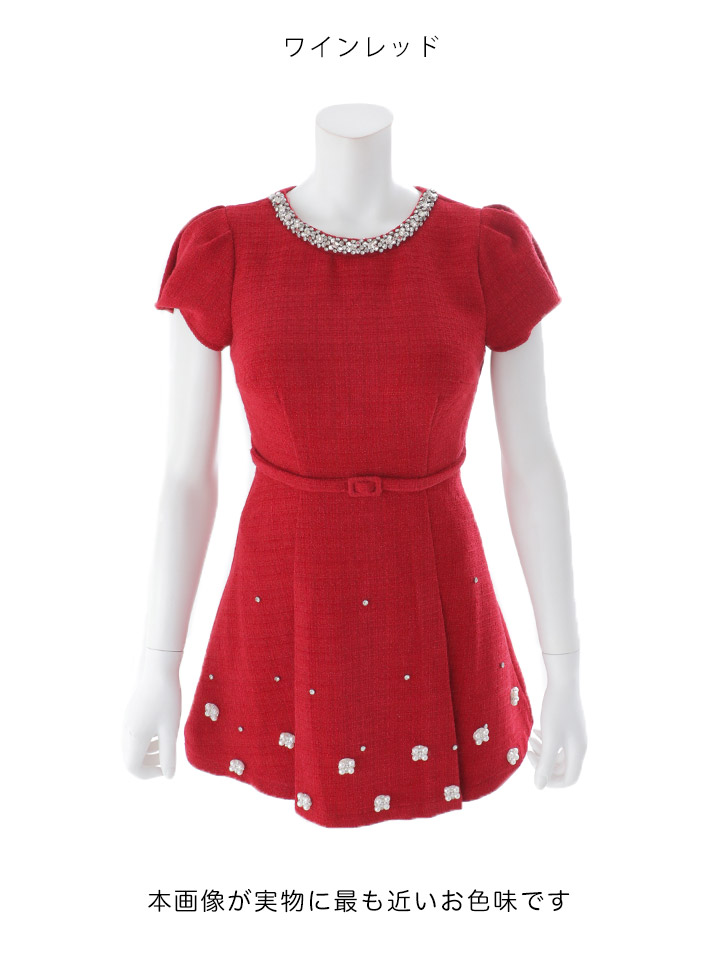 パフスリーブビジューツイードミニワンピースドレス/キャバドレス【XS-Lサイズ/1カラー】[OF03] 【YN】dzwvIA
