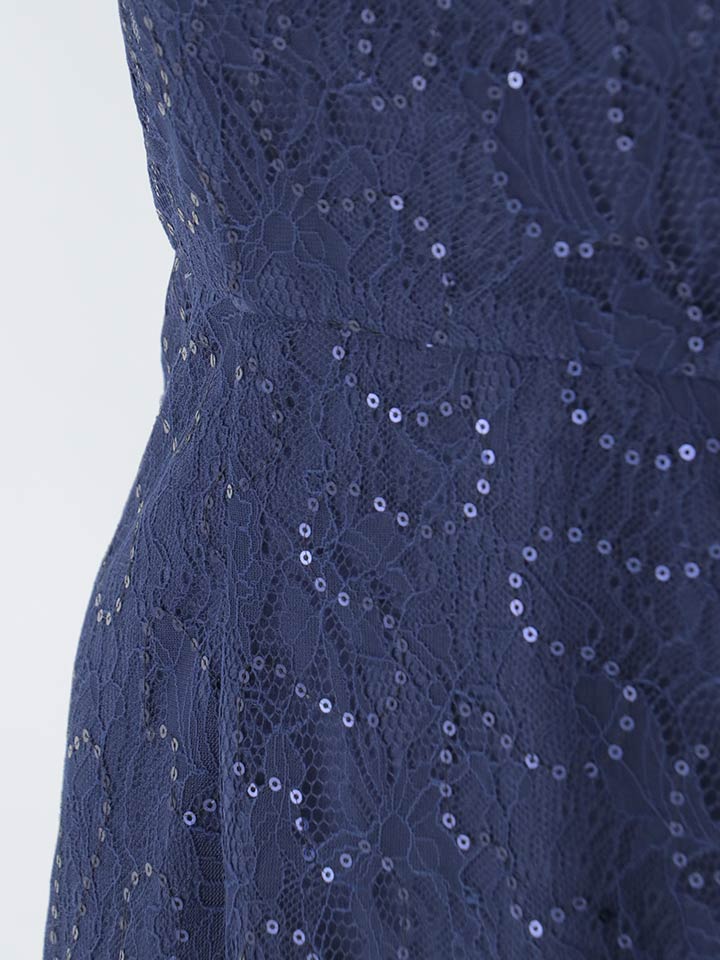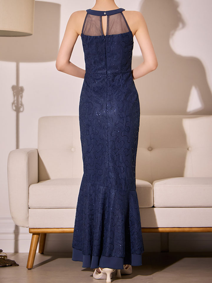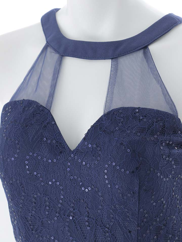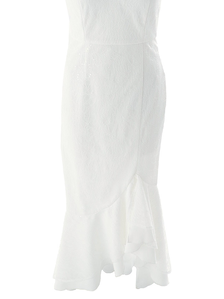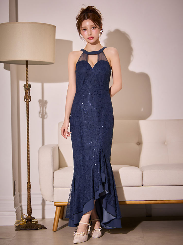 きらめくレースが全体を美しく飾り、視線を集める華やかさを纏える一着です。