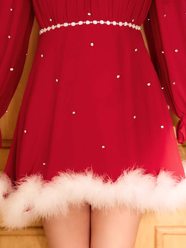 【即日発送】【サンタ】袖付きシフォンワンピースビジューサンタコスプレ【コスプレ3点セット】【S-Mサイズ/2カラー】[OF04]