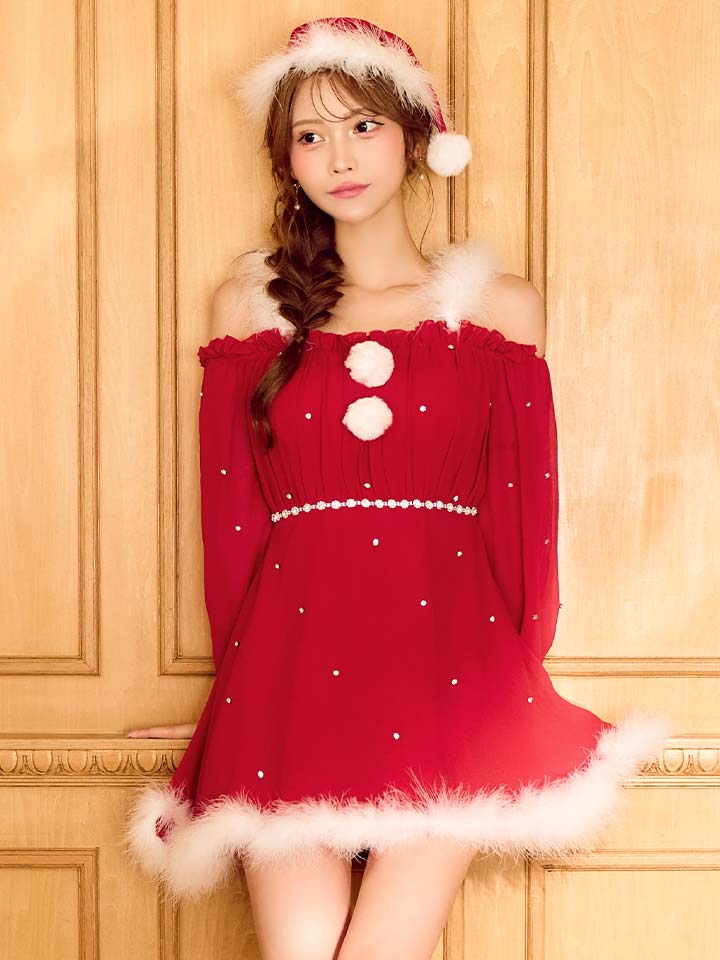 セクシーに着こなせるオフショルサンタコスプレ。