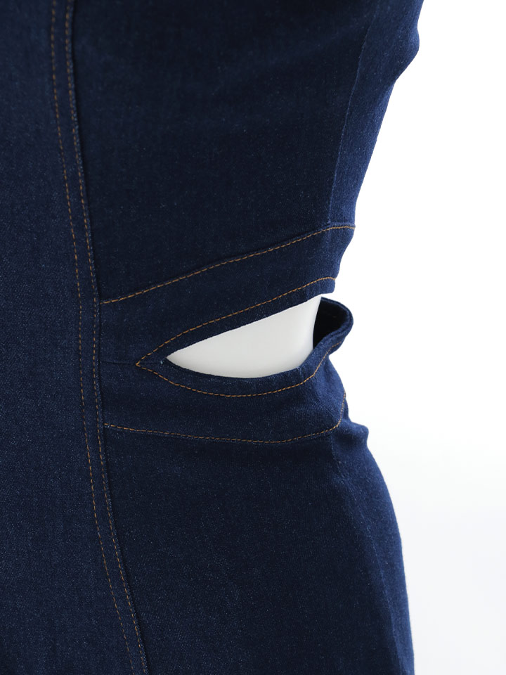 サイドスリットがさりげなく抜け感を演出するデニムワンピース。