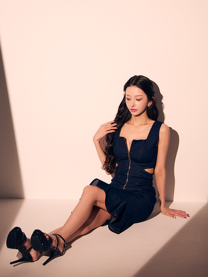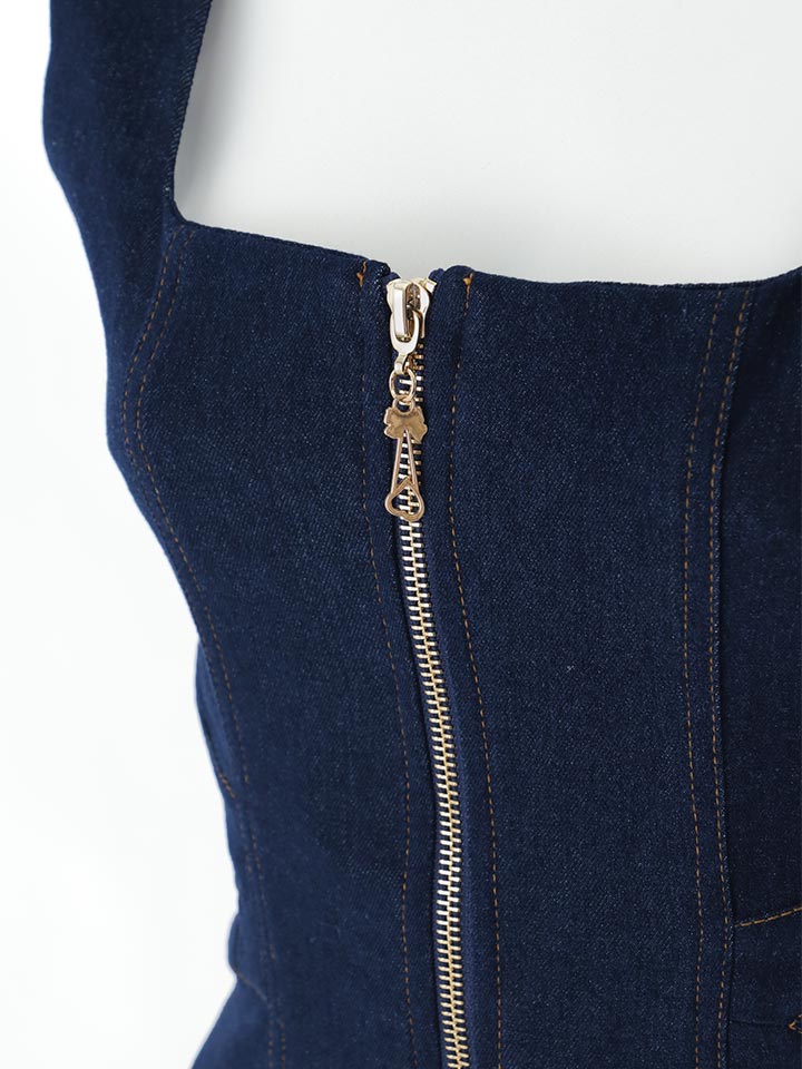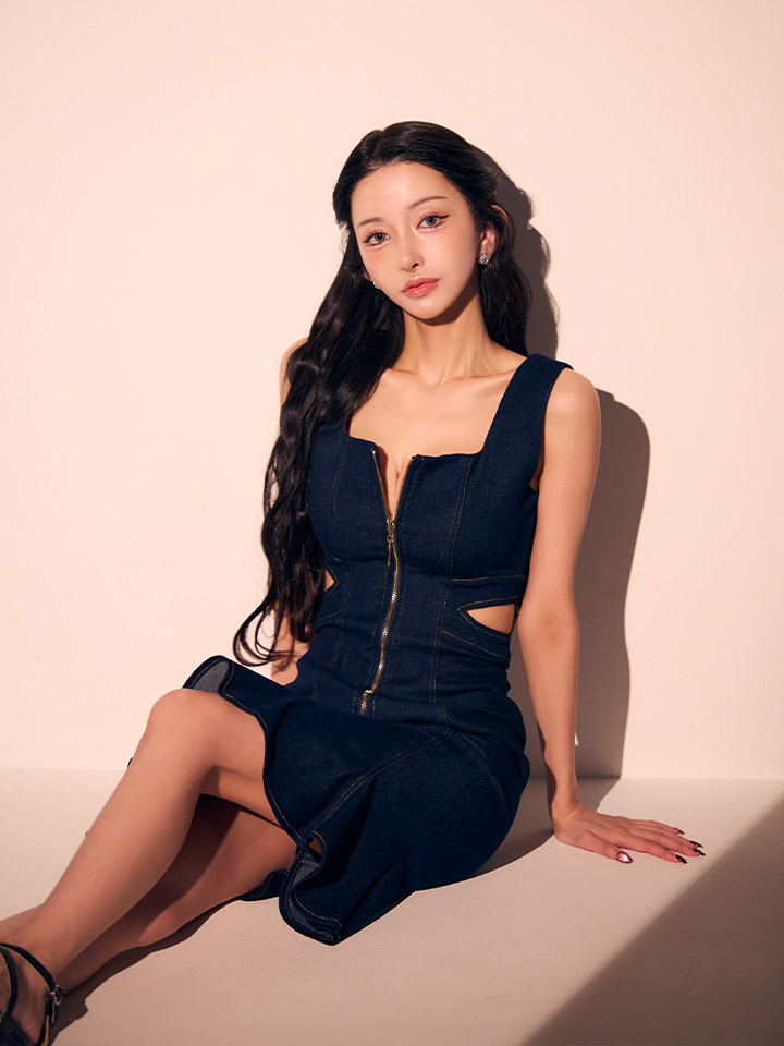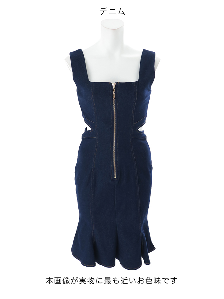 フロントジップサイドスリットデニムワンピース/キャバドレス【S-Mサイズ/1カラー】[OF03] 【FS】